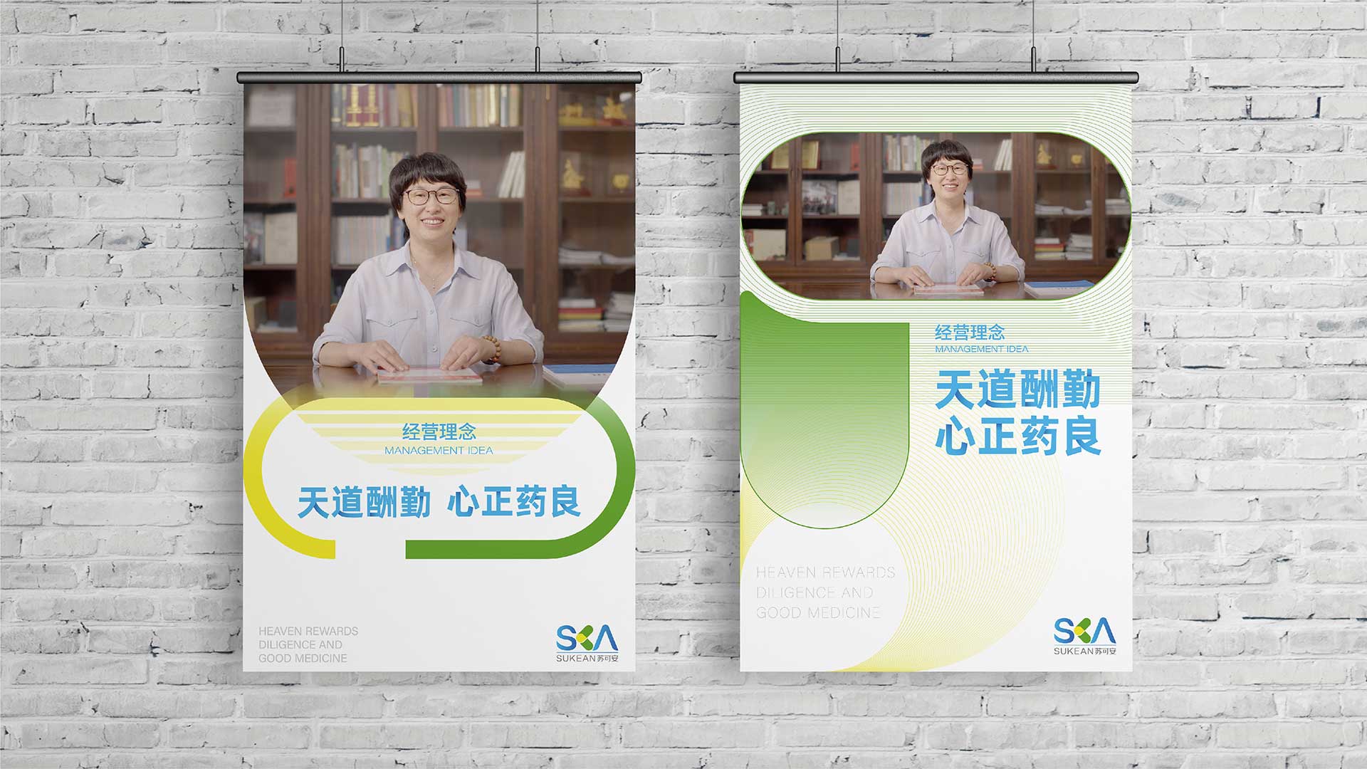 LOGO的中部采用膠囊的組合型來表現K的右半側。上半部分采用顏色變化來區分膠囊兩個部分不同的顏色,根據公司中成藥成分比例進行圖形的融合,下半部分進行斷截處理融入氣霧劑的主體形狀,末端利用漸變處理將氣霧劑的工作狀態進行融入。上下部分組合成一個“心”形,寓意著蘇可安秉持著公益之心,踐行社會責任,做良心之藥。同時代表著公司今后的發展方向和打造心血管領域標桿產品的決心。在表現企業性質的同時,增加了企業的文化感。