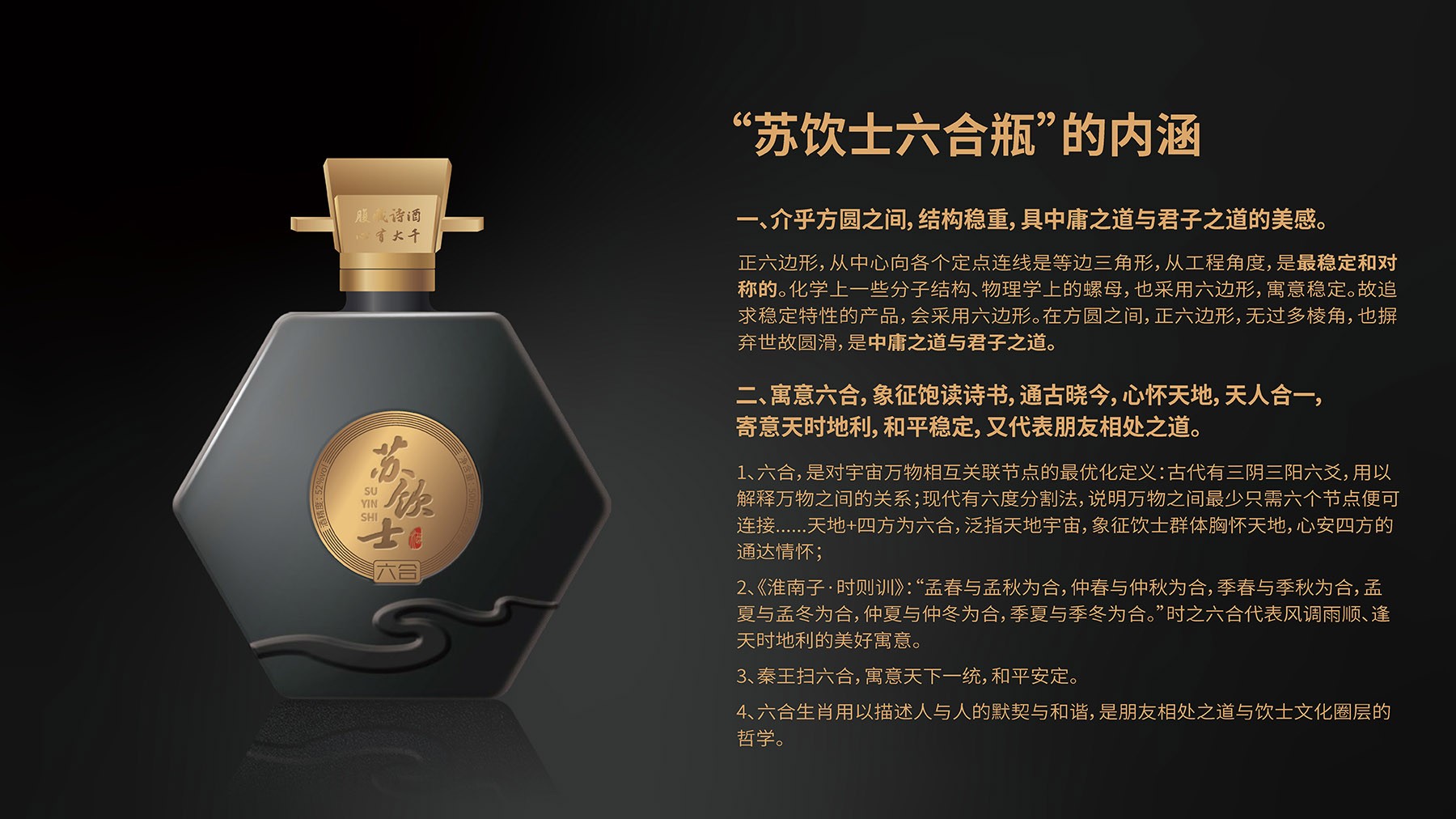 蘇飲士來自中國酒都江蘇宿遷,宿遷有著悠久的釀酒歷史和高超的制酒工藝,早在千年前,蘇軾途徑宿遷就品嘗過當地美酒,并留下詩文大肆贊美,結合蘇酒的地理區隔、蘇軾的歷史典故以及中國白酒文化的精神傳承,蘇飲士的命名由此而來,它代表著“純正蘇系”、“蘇軾文化”和“飲士文化”的三重屬性。
