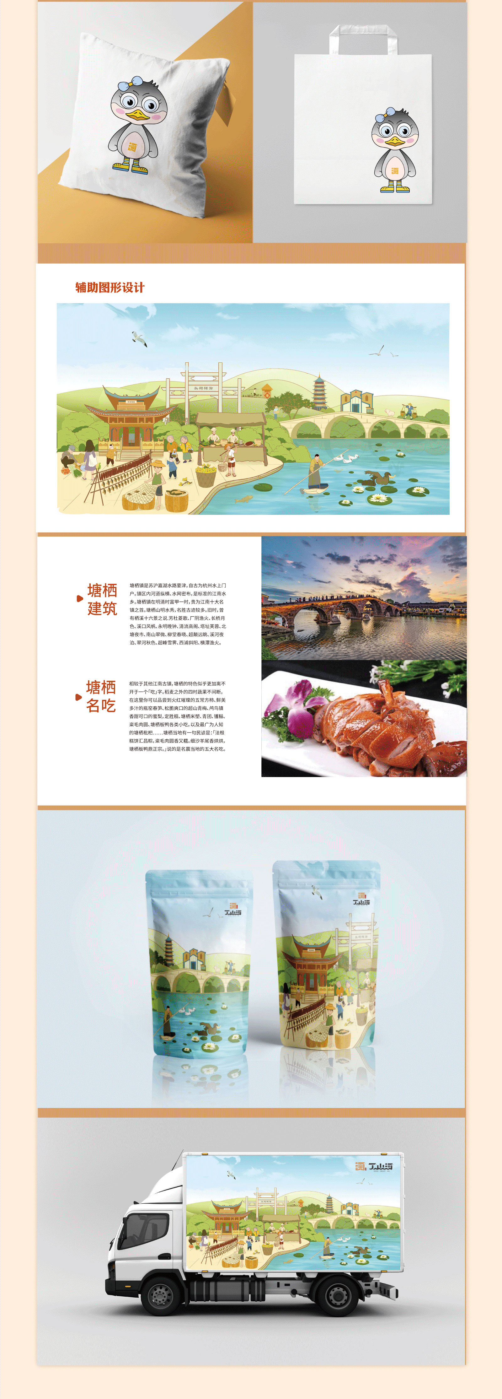 LOGO是消費(fèi)者認(rèn)識一個品牌的開端,不僅是品牌視覺傳達(dá)要素的核心,也是品牌開展信息傳播的主導(dǎo)力量。結(jié)合丁山河的品牌特點(diǎn),在logo設(shè)計時,以“河”為主體,將“丁”“山”二字巧妙融合,組成一個獨(dú)特的圖形符號,寓意美好,記憶點(diǎn)明顯;此外,還加入了“廣濟(jì)橋”“乾隆御碑”等具有當(dāng)?shù)靥厣姆枺宫F(xiàn)江南名鎮(zhèn)古韻的特色,地域性鮮明,易于辨認(rèn),也有助于將品牌與消費(fèi)者連接起來,始之成為品牌與受眾的橋梁。同時我們還對其輔助圖形進(jìn)行了設(shè)計,利用原創(chuàng)手繪的形式,將塘棲古鎮(zhèn)的本土建筑、特色進(jìn)行呈現(xiàn),展現(xiàn)地方原貌,突出當(dāng)?shù)靥厣M(jìn)而拉近與消費(fèi)者的距離,幫助消費(fèi)者更好的了解品牌。另外,我們還對丁山河的IP進(jìn)行打造,獲得客戶的認(rèn)可。