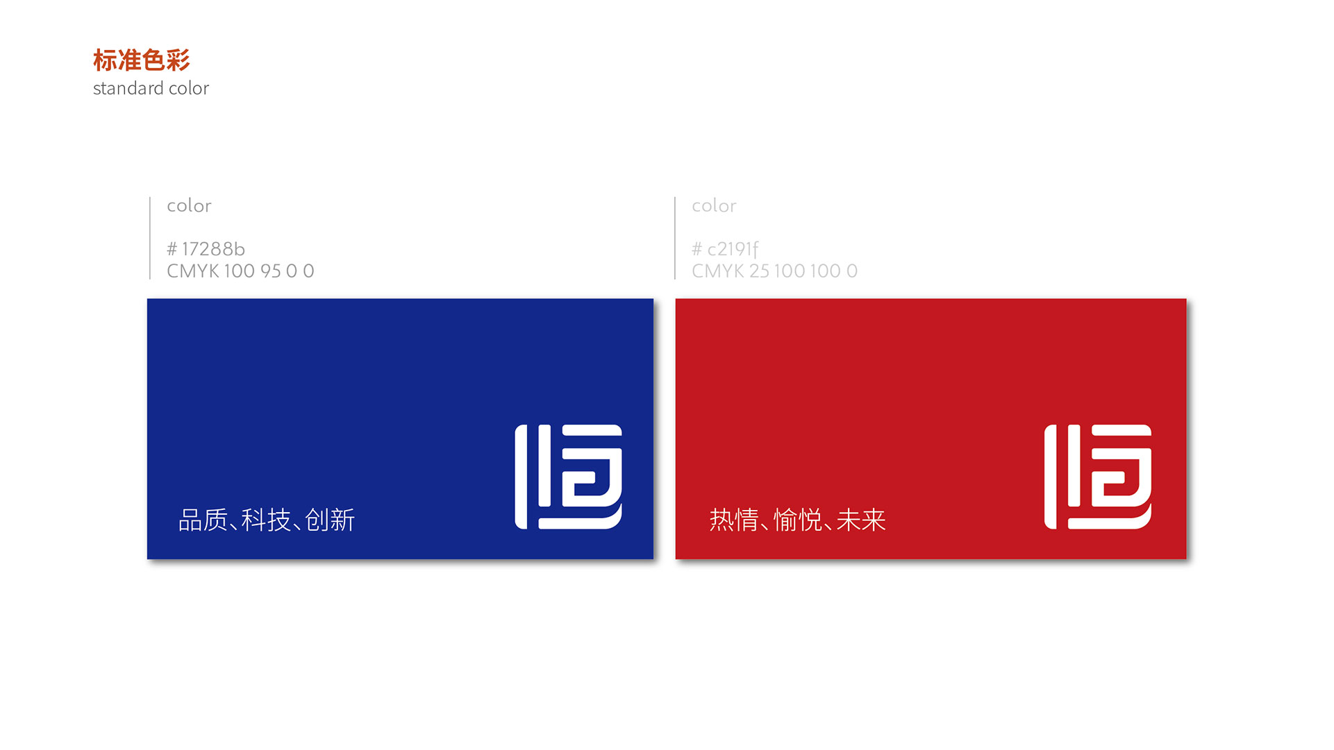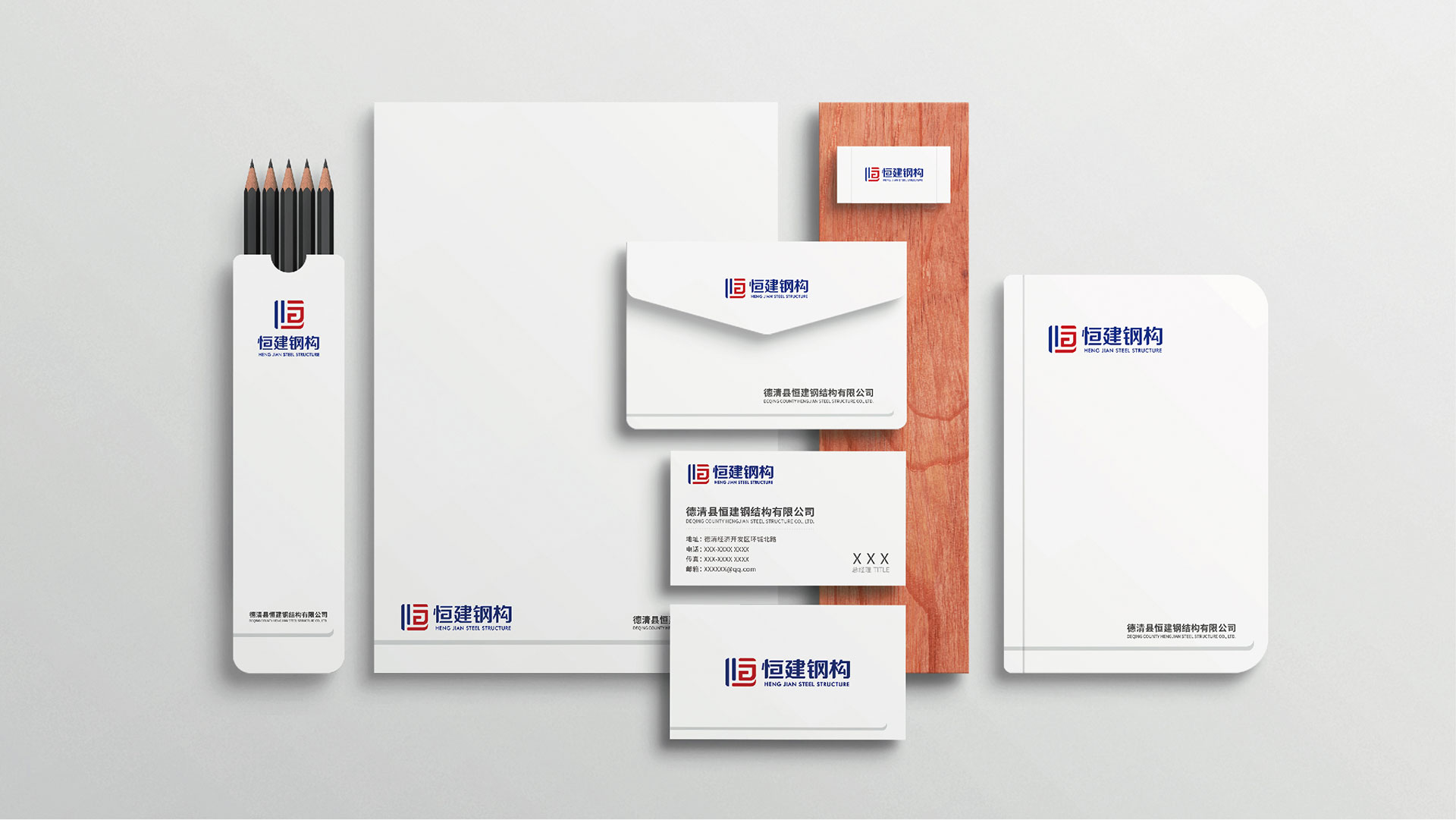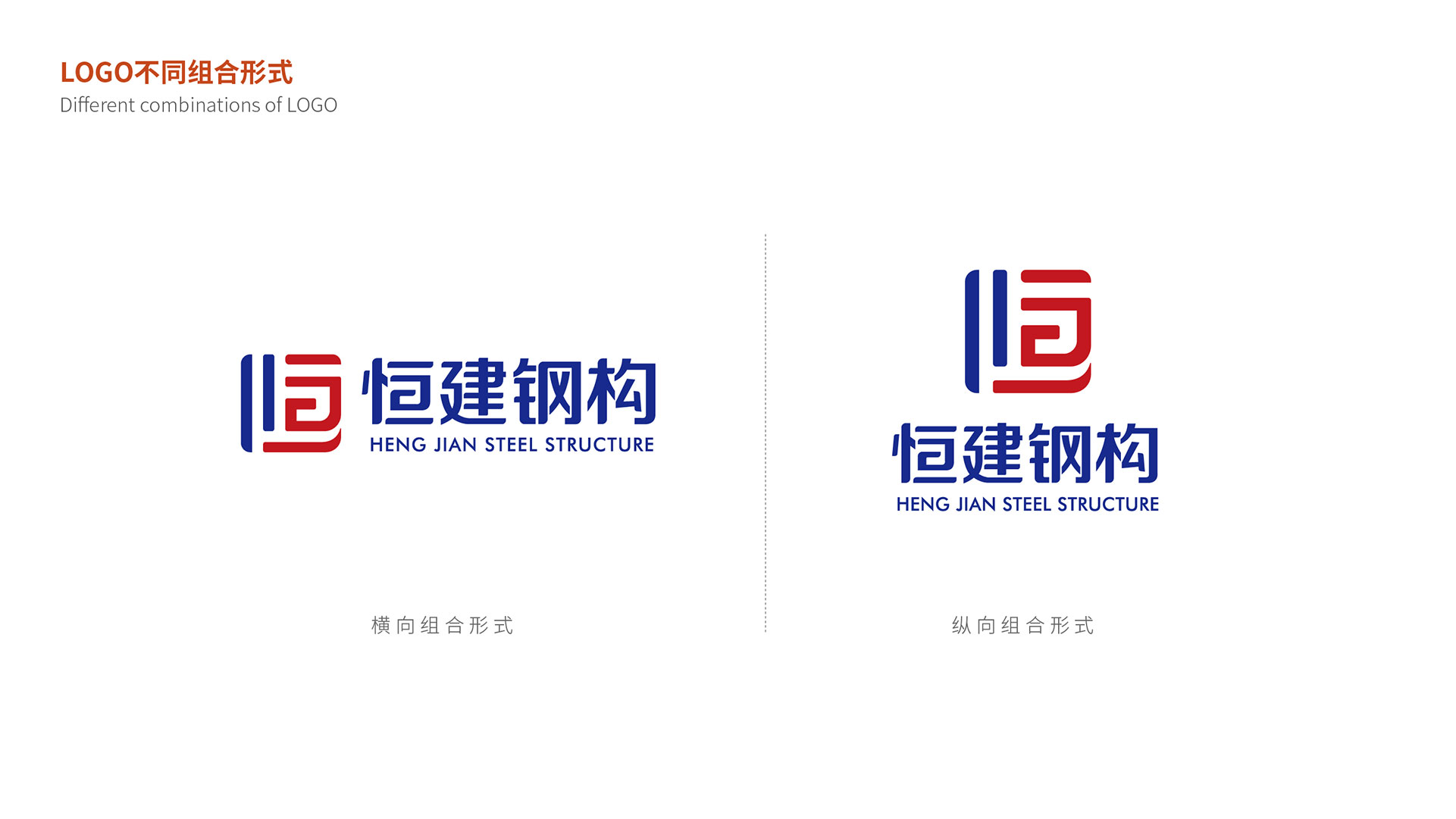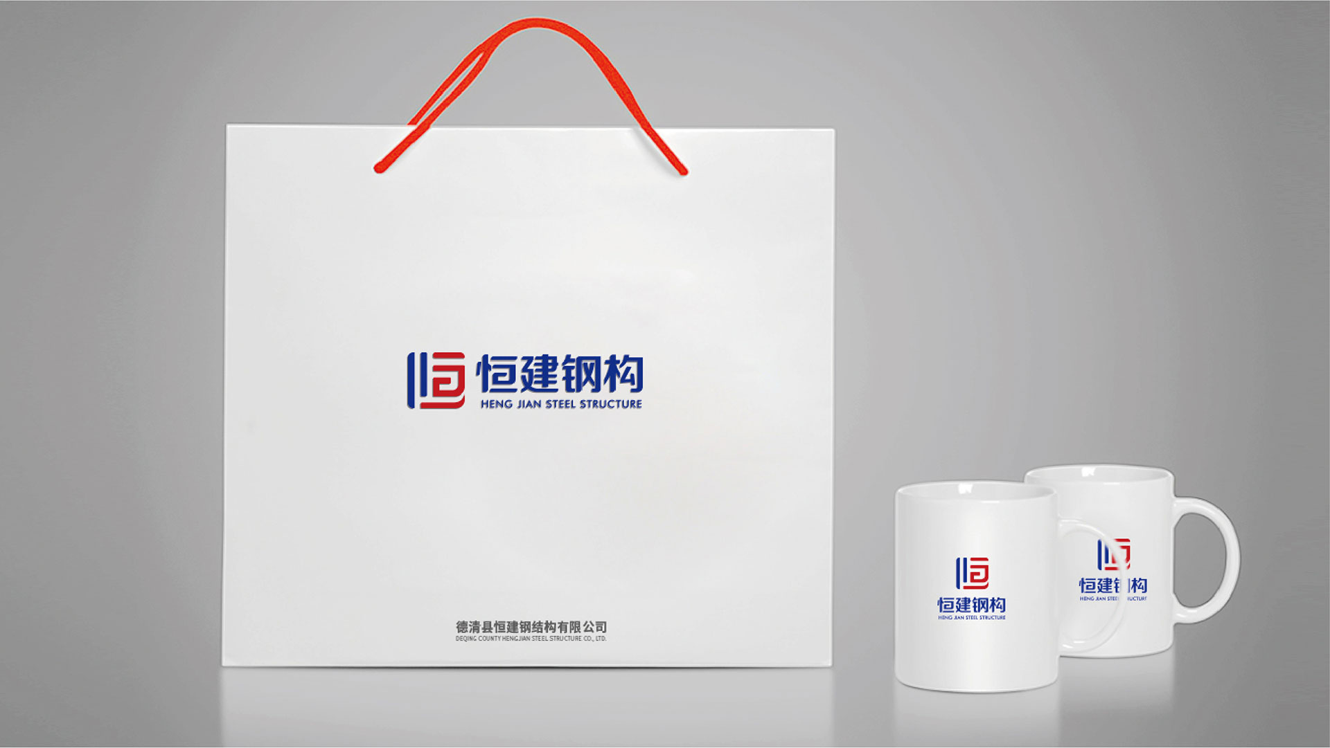 logo設計以品牌名“ 恒" 字作為主要圖形創(chuàng)意, 結(jié)合“ 恒” 字特點, 融入印章、字母"H 、G ” 等元素, 抽象化處理形成完整標志形態(tài)。 logo整體如同印章。眾所周知, 印章是權(quán)力、身份的象征, 是責任、信用的體現(xiàn)方式, 體現(xiàn)企業(yè)對待客戶的責任精神; 信任是企業(yè)發(fā)展之根本, 企業(yè)與客戶之間的相互信任, 才是企業(yè)合作共贏、共同發(fā)展的最終目標。 logo圖形橫豎線條相互融合、共同組合成完整圖形的特征與鋼結(jié)構(gòu)建筑鋼鐵部件相互搭建的形態(tài)有異曲同工之處, 凸顯品牌建筑、鋼材制造行業(yè)特點。 logo整體以方形呈現(xiàn), 四個角添加弧形處理, 著重體現(xiàn)恒建鋼構(gòu)的" 方圓" 特性, 方一一亻弋表著嚴格、規(guī)范與認真, 是企業(yè)對產(chǎn)品品質(zhì)的嚴格把控和對待工作的認真細致; 圓一. 一象征著包容、親和, 代表企業(yè)包容、貫通的精神理念。