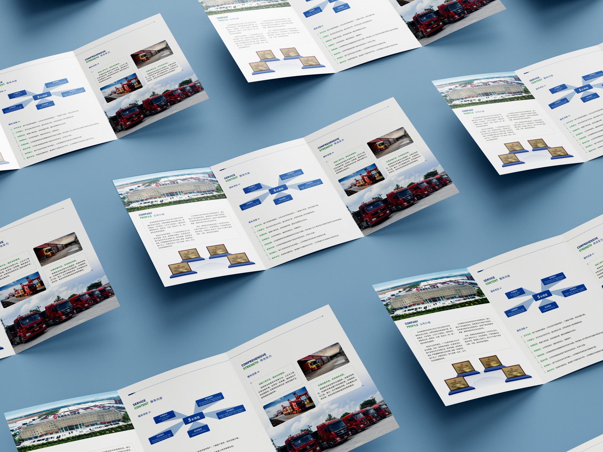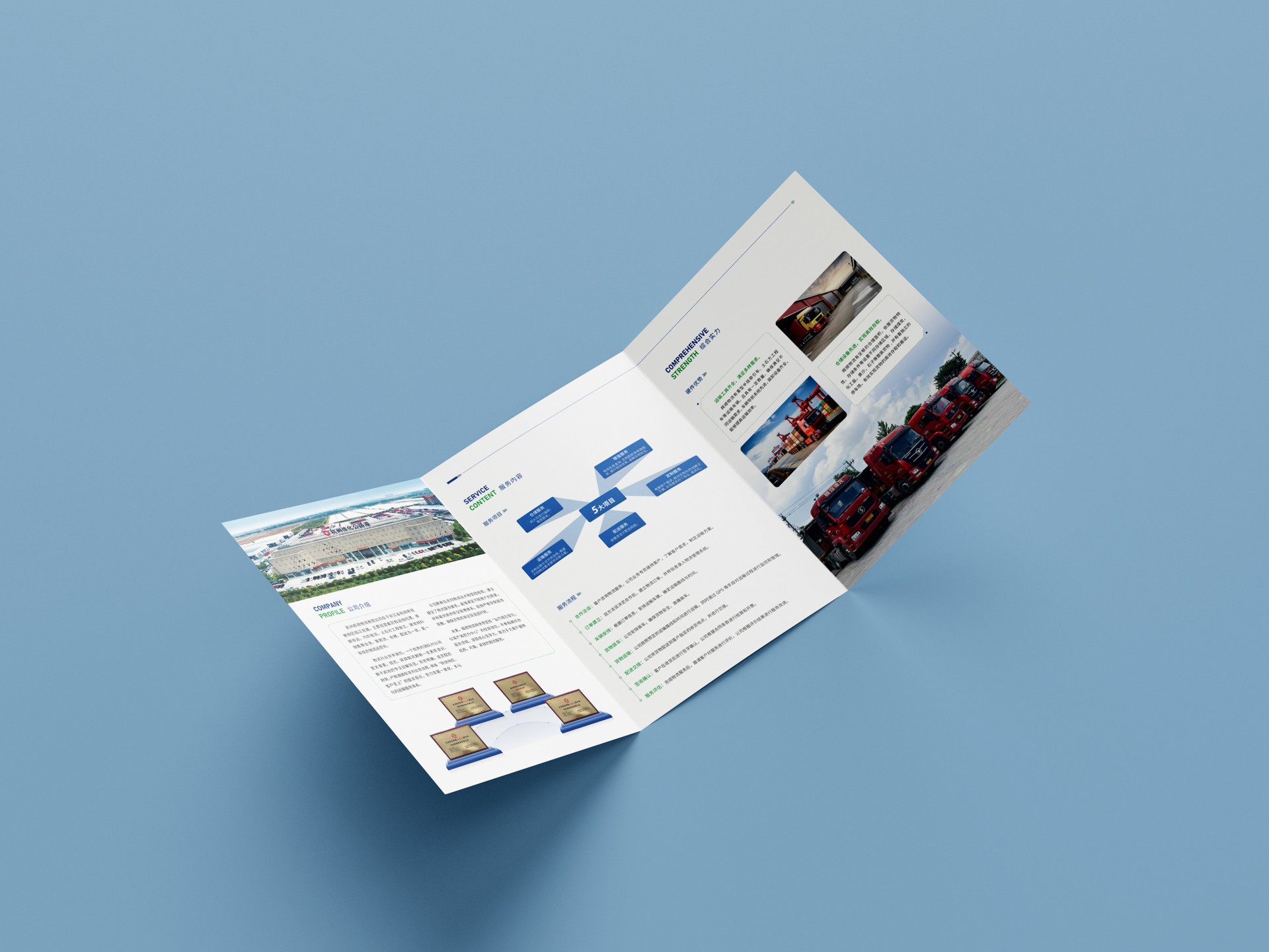 折頁內容包括企業文化、企業概況、服務項目流程、綜合實力等,展示公司的軟硬件優勢,突出公司實力。