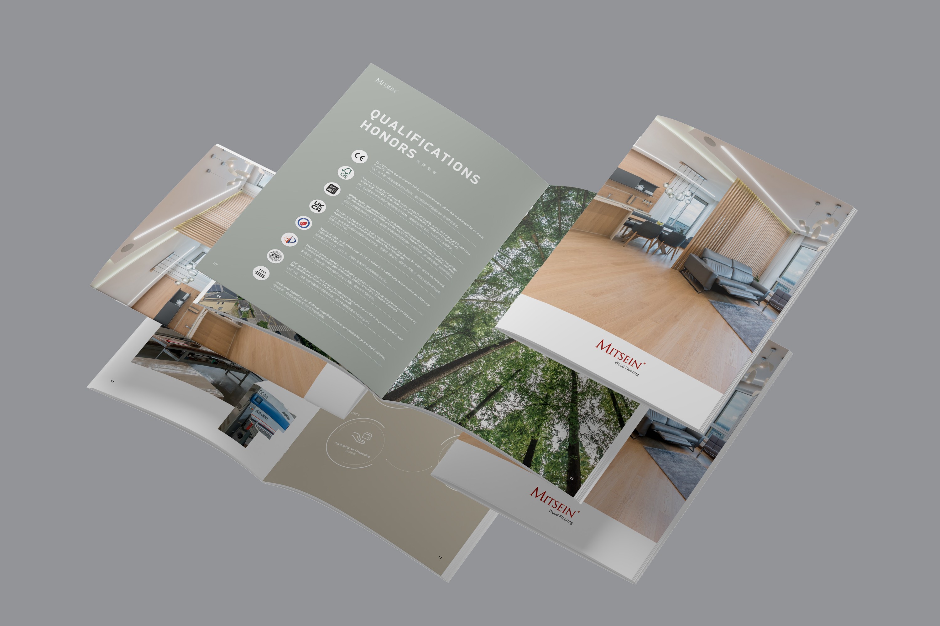 淺木色與灰色為主要色彩,既展現(xiàn)出明成木業(yè)的企業(yè)行業(yè)屬性,又具備自然環(huán)保的特征,色調(diào)大體一致,極具整體感。