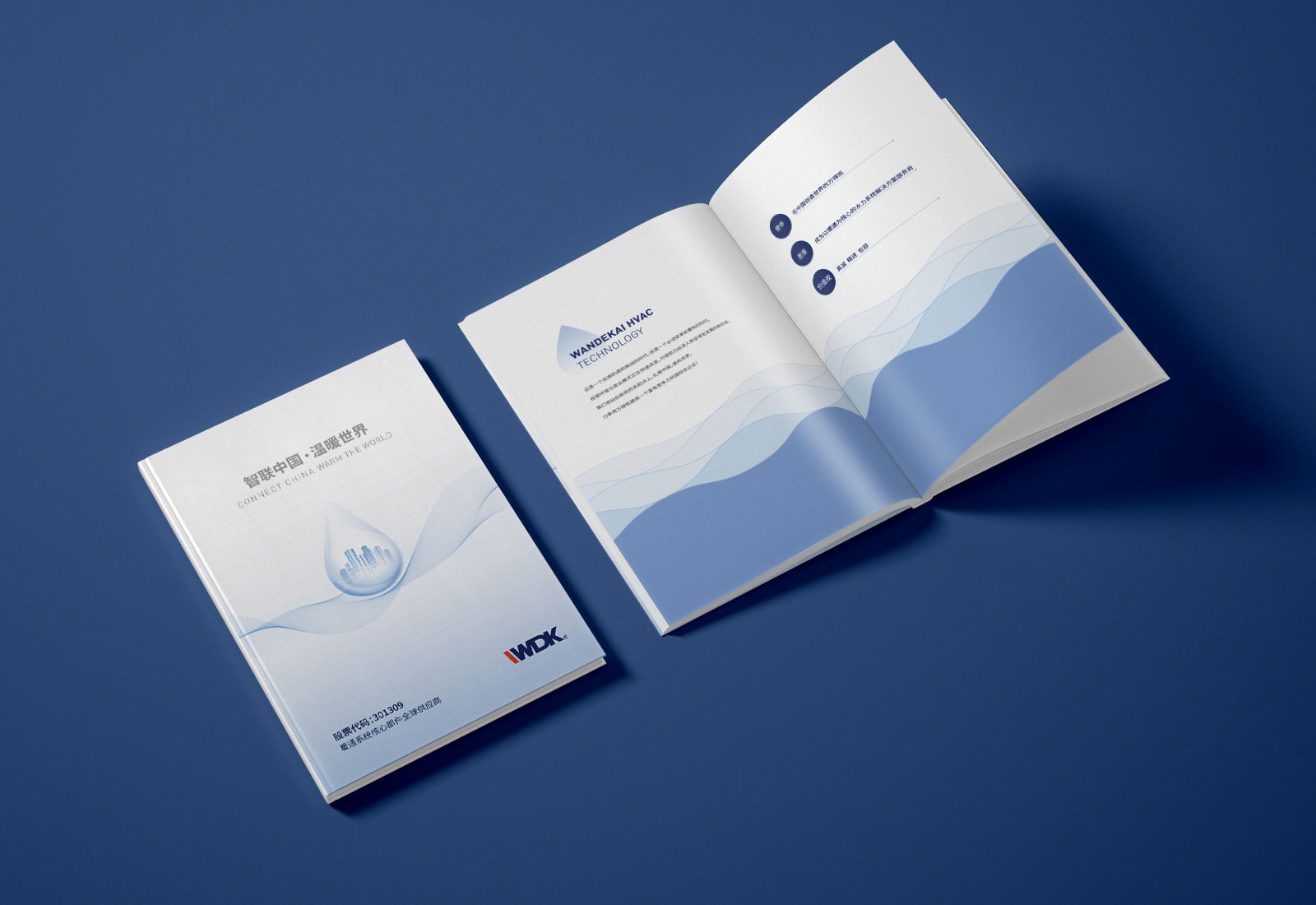 萬得凱是一家水利系統解決方案服務商,委托石特設計宣傳冊,在了解企業需求以及宣傳冊使用方向后,石特決定采用簡潔明了的設計風格設計宣傳冊。