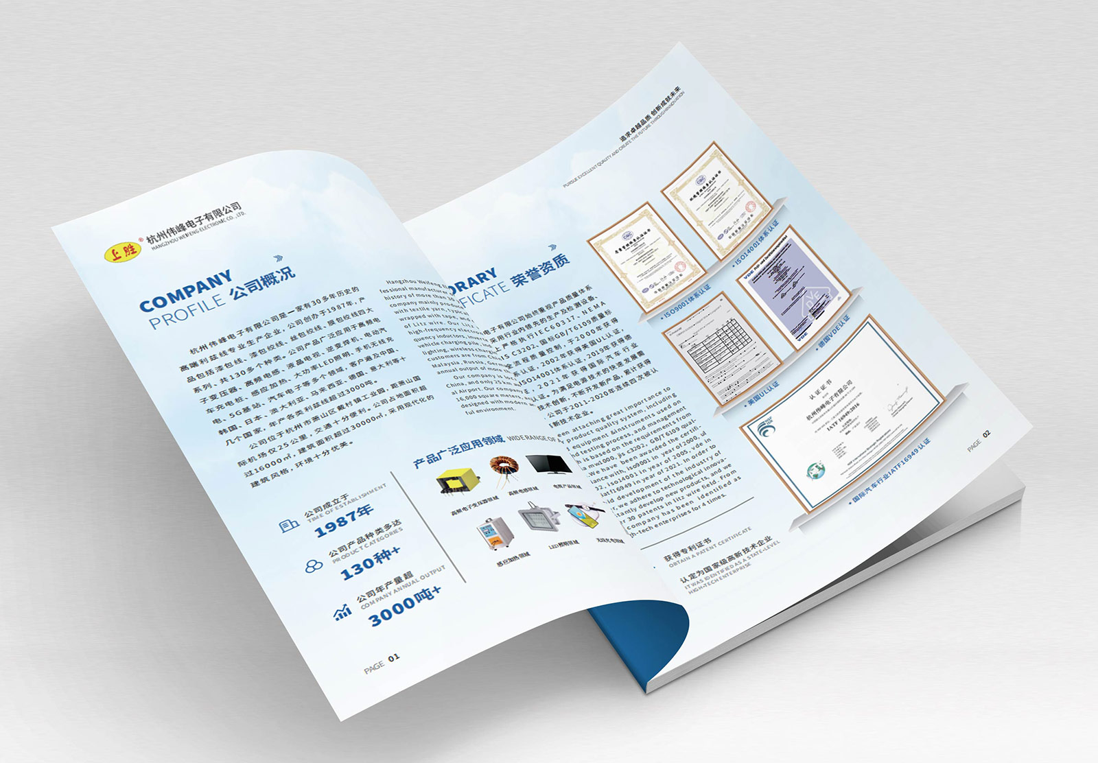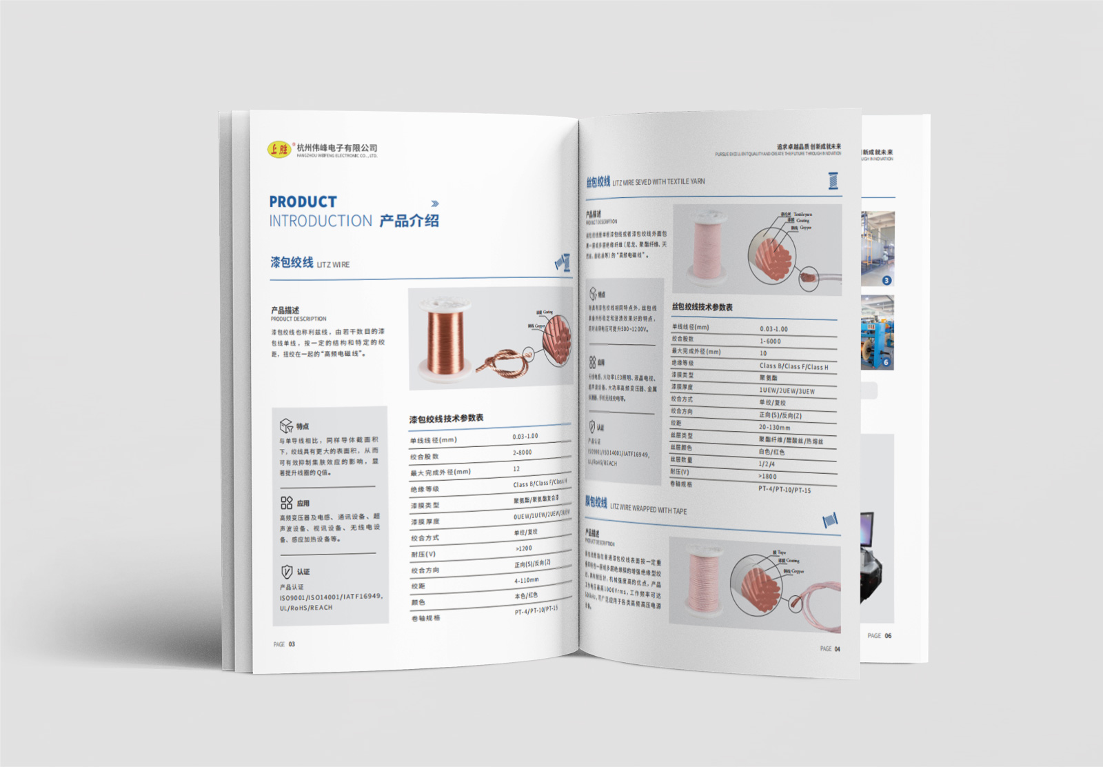 杭州偉峰電子有限公司是一家有近30年歷史的高端銅繞組線專業(yè)生產(chǎn)企業(yè),主要生產(chǎn)漆包絞合線、絲包漆包絞合線、膜包漆包絞合線三個(gè)系列、共40多個(gè)品種的繞組線,公司產(chǎn)品廣泛應(yīng)用于高頻電感、無(wú)線充電等多個(gè)領(lǐng)域,客戶遍及中國(guó)、韓國(guó)、日本、澳大利亞、俄羅斯等十幾個(gè)國(guó)家,年產(chǎn)繞組線超過(guò)3000噸。為能更好的展示企業(yè)實(shí)力及品牌形象,偉峰電子希望通過(guò)宣傳冊(cè)為對(duì)外宣傳的一個(gè)重要窗口,因此找到石特。