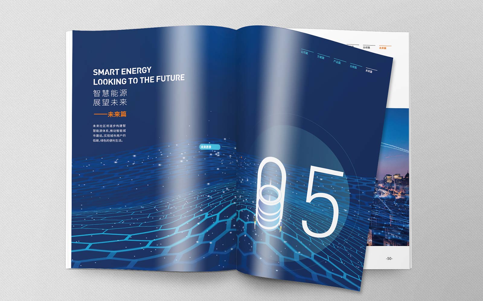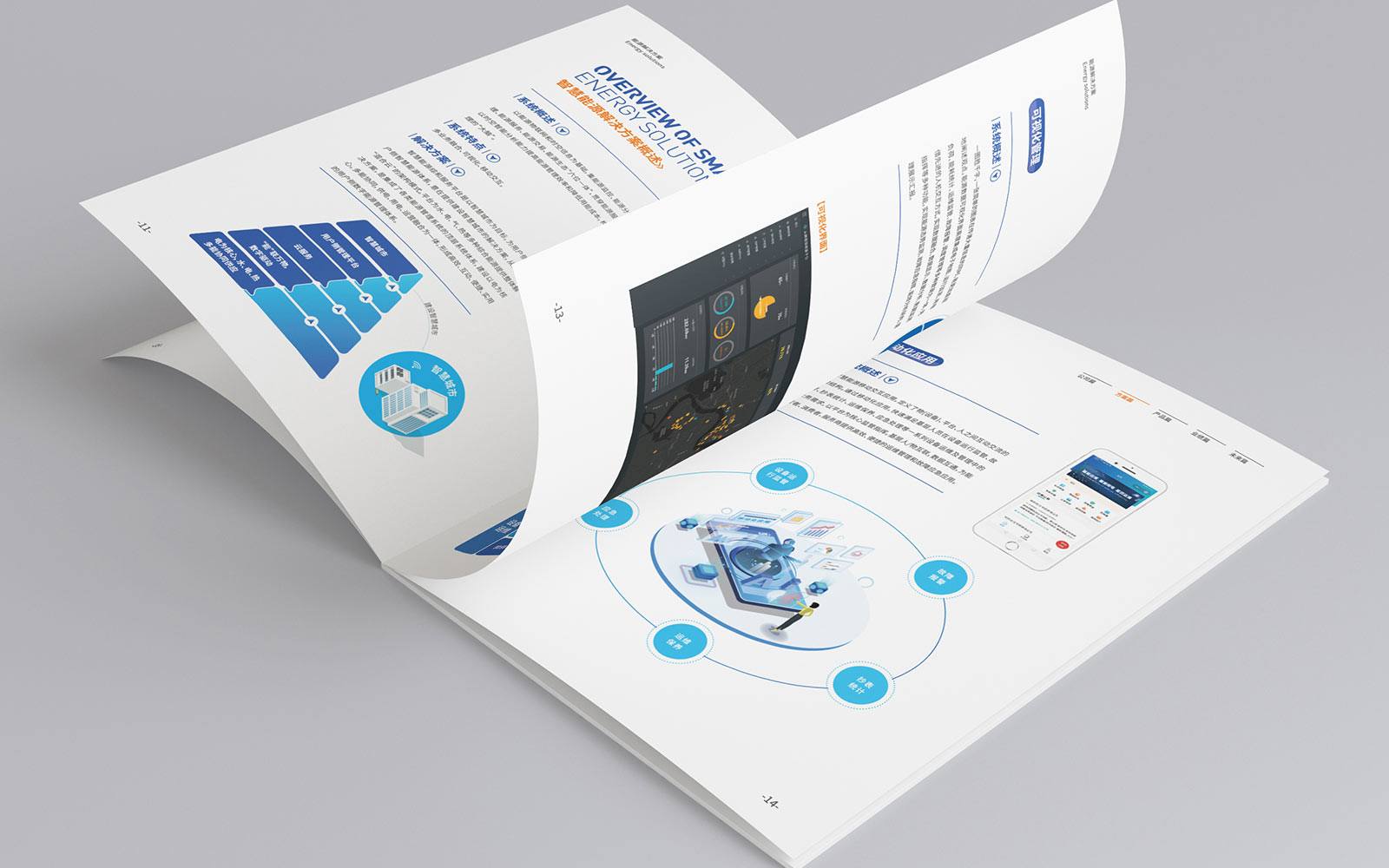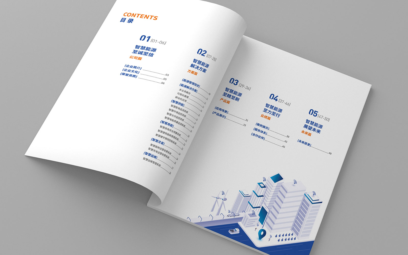 畫冊在設(shè)計過程中為實現(xiàn)能源的可視化,進行了2.5D的插畫設(shè)計,讓整本畫冊內(nèi)容美觀、易懂。封面采用了數(shù)據(jù)化、科技化的設(shè)計,貼合企業(yè)的行業(yè)屬性。