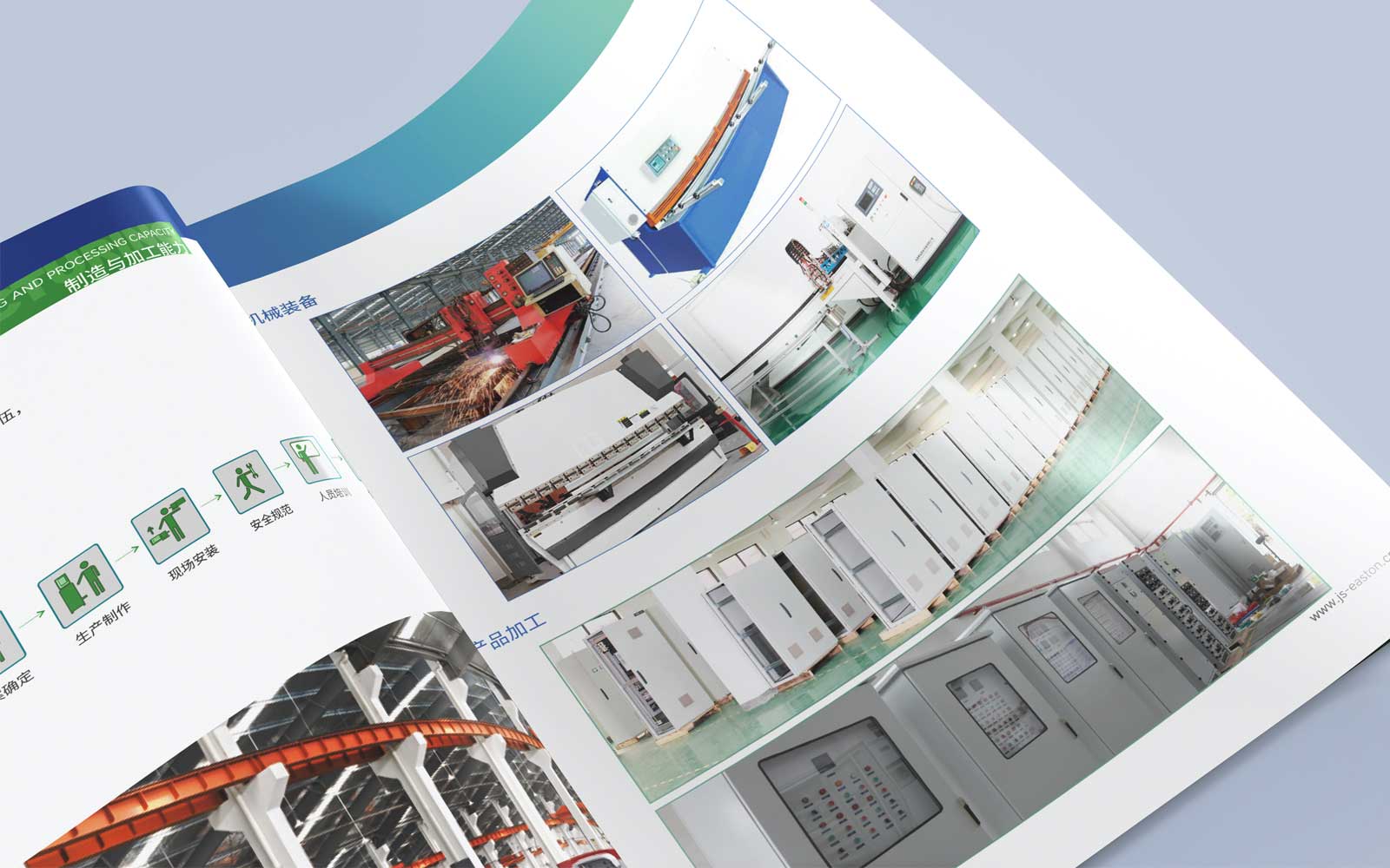 機(jī)電工程公司的產(chǎn)品屬于冷冰冰的機(jī)器,企業(yè)樣本如果想突破這樣的感覺,那么設(shè)計(jì)中就需要構(gòu)思一些元素,使企業(yè)樣本設(shè)計(jì)不至于像一塊板磚。