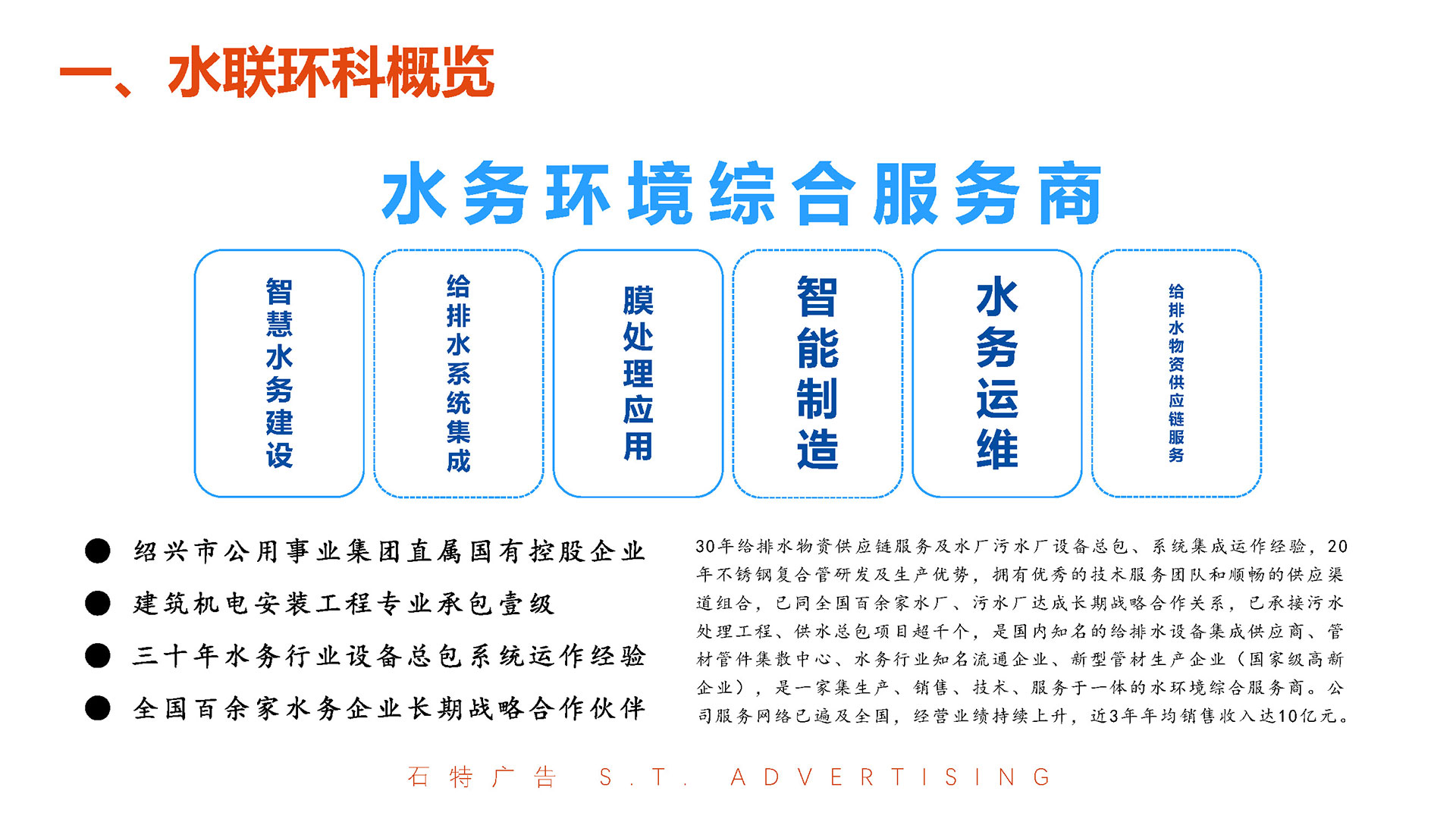 浙江水聯(lián)環(huán)科集團(tuán)有限公司作為紹興市公用事業(yè)集團(tuán)直屬的國(guó)有控股企業(yè),深耕供排水物資經(jīng)營(yíng)、不銹鋼復(fù)合管生產(chǎn)及設(shè)備集成總包領(lǐng)域20余年,銷售網(wǎng)絡(luò)覆蓋省內(nèi)外,近3年年均銷售收入達(dá)6.5億元,并獲評(píng)浙江省守合同重信用3A級(jí)單位、國(guó)家高新技術(shù)企業(yè)等榮譽(yù)。面對(duì)行業(yè)競(jìng)爭(zhēng)加劇與可持續(xù)發(fā)展需求,石特廣告策劃團(tuán)隊(duì)以“科技賦能水務(wù),綠色驅(qū)動(dòng)未來(lái)”為核心理念,為其量身定制品牌全案升級(jí)方案,涵蓋調(diào)研分析、品牌定位、品牌DNA重構(gòu)、廣告語(yǔ)提煉、VI視覺(jué)識(shí)別系統(tǒng)設(shè)計(jì)及宣傳畫冊(cè)策劃,助力企業(yè)從傳統(tǒng)制造向科技化、綠色化品牌轉(zhuǎn)型,強(qiáng)化行業(yè)標(biāo)桿地位。