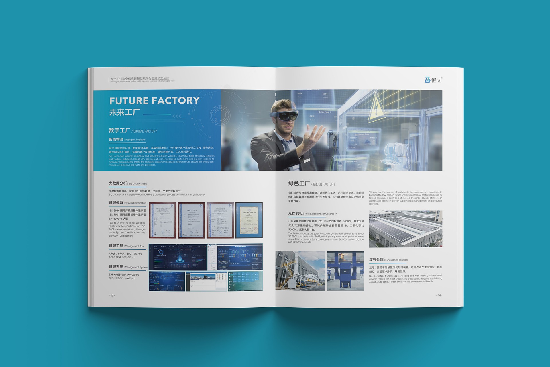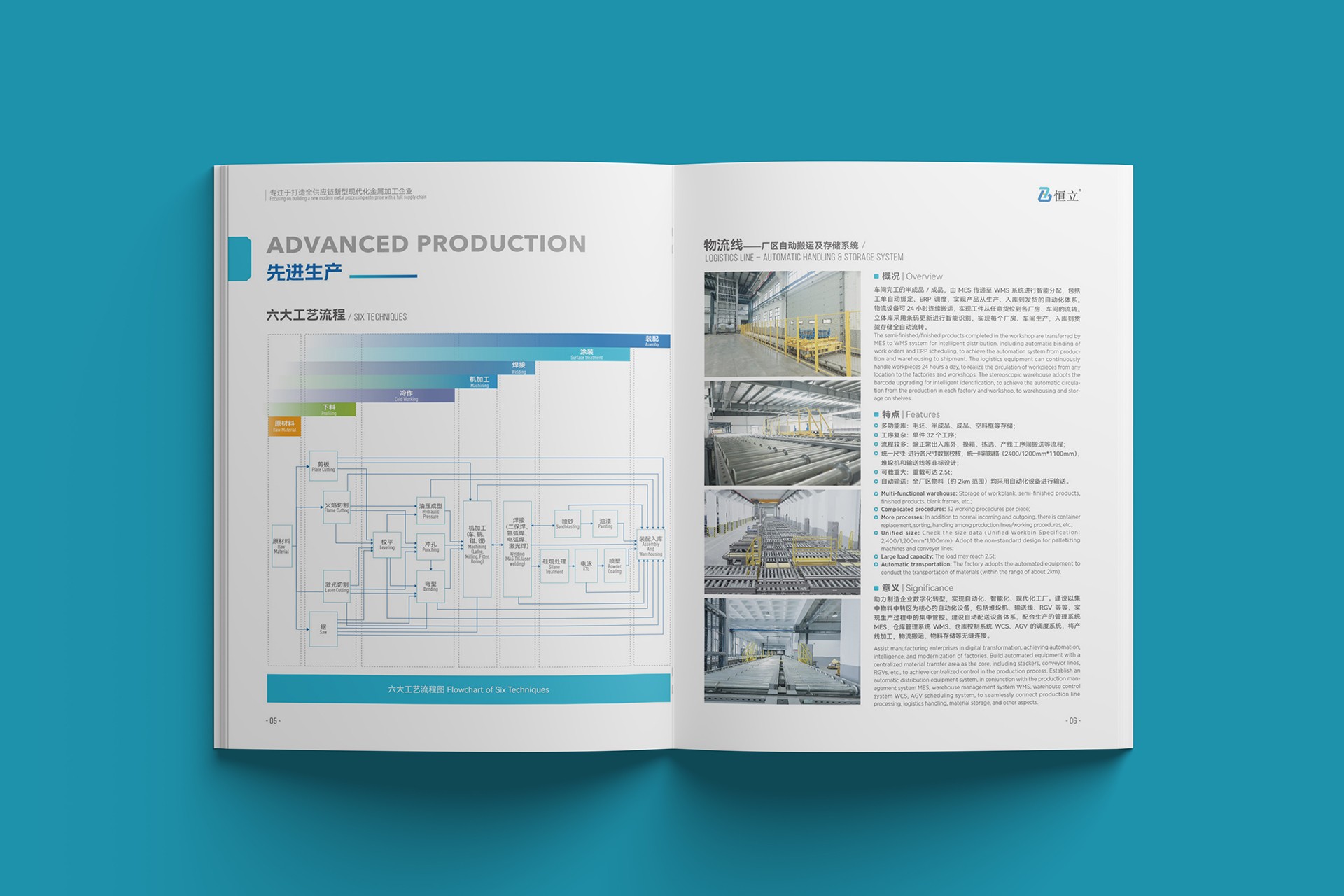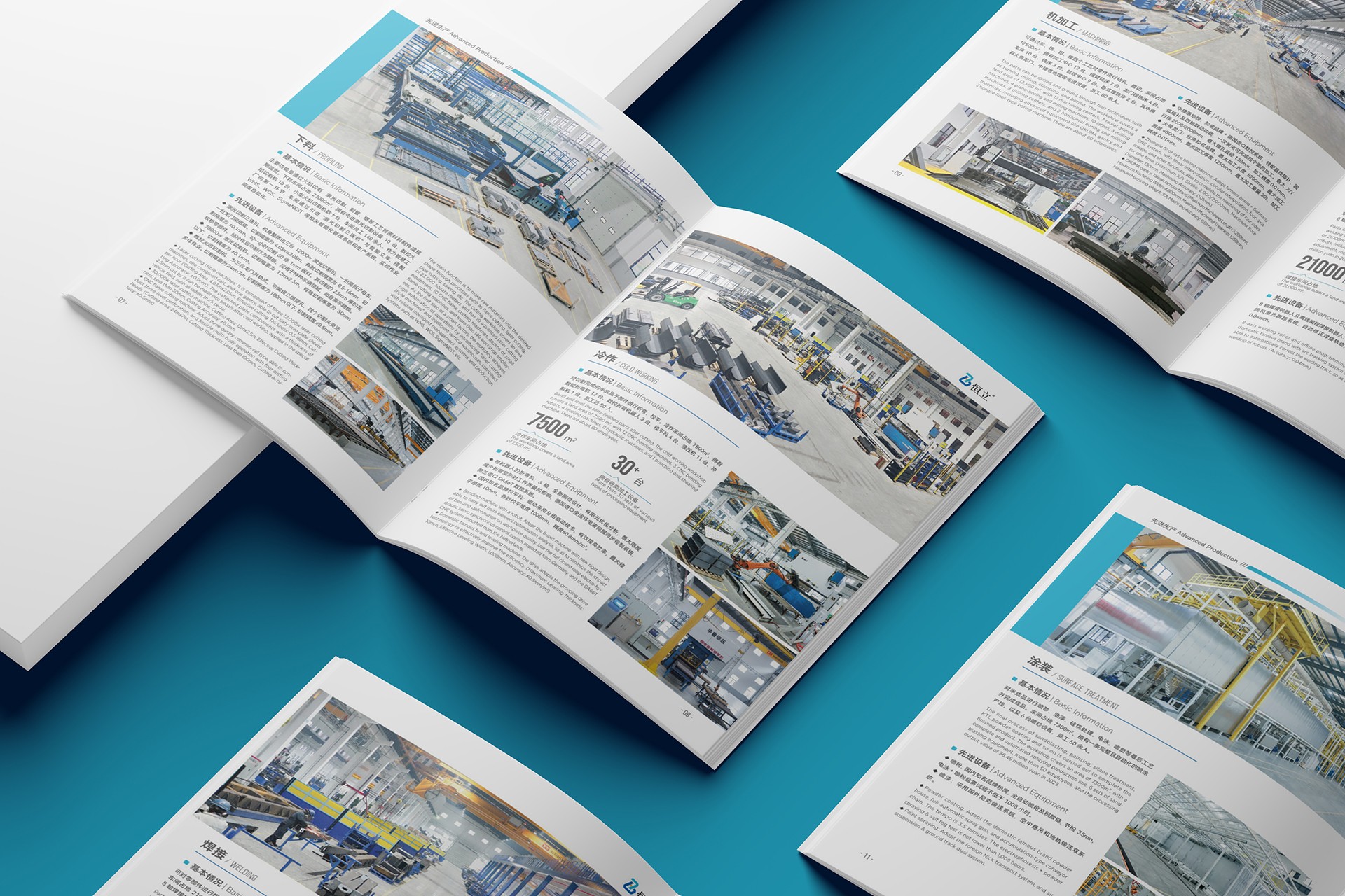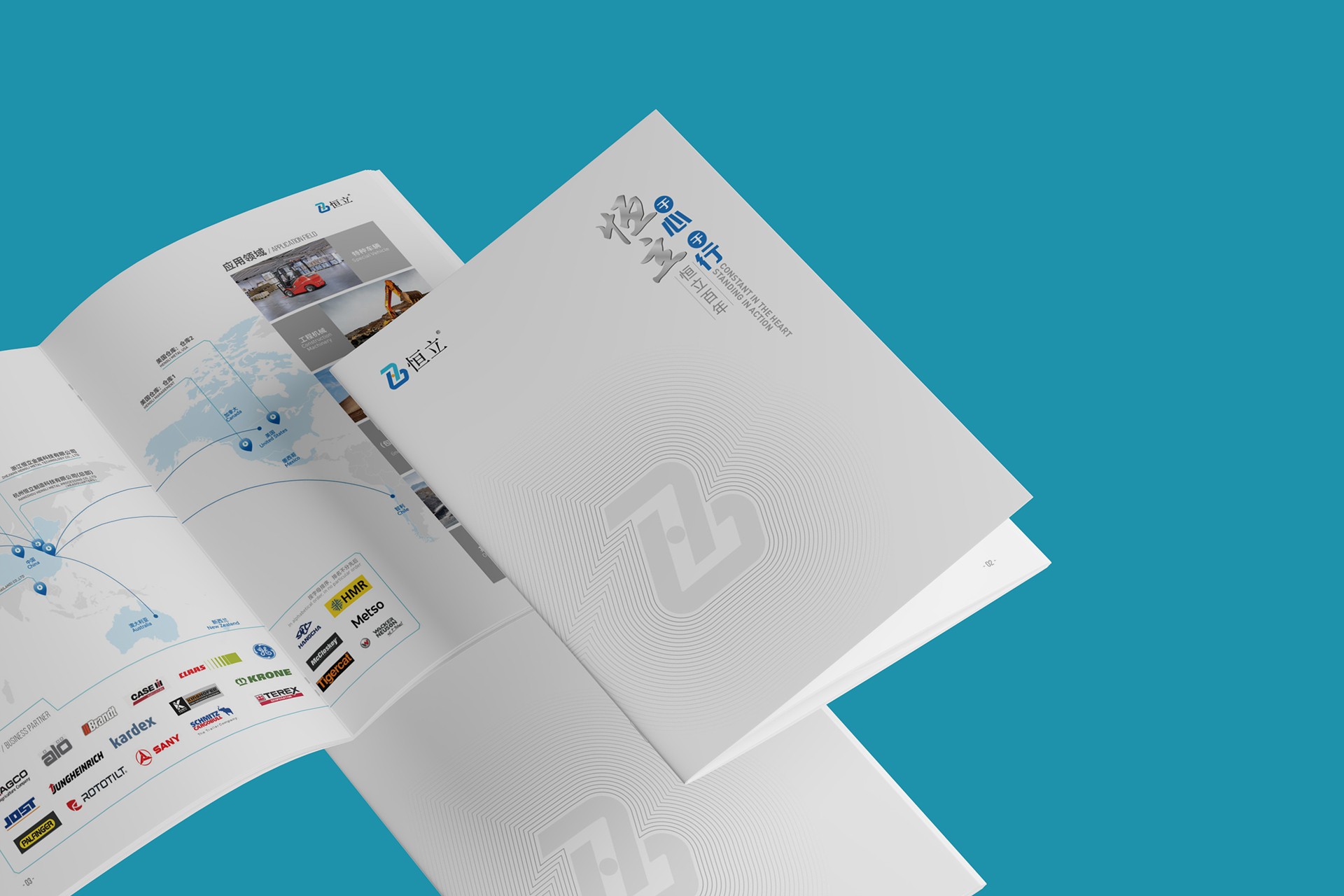 內(nèi)頁(yè)布局:通過(guò)模塊化設(shè)計(jì)清晰展示恒立的核心業(yè)務(wù),包括原材料供應(yīng)鏈、精密加工技術(shù)、表面處理工藝及物流配送體系,圖文并茂,一目了然。