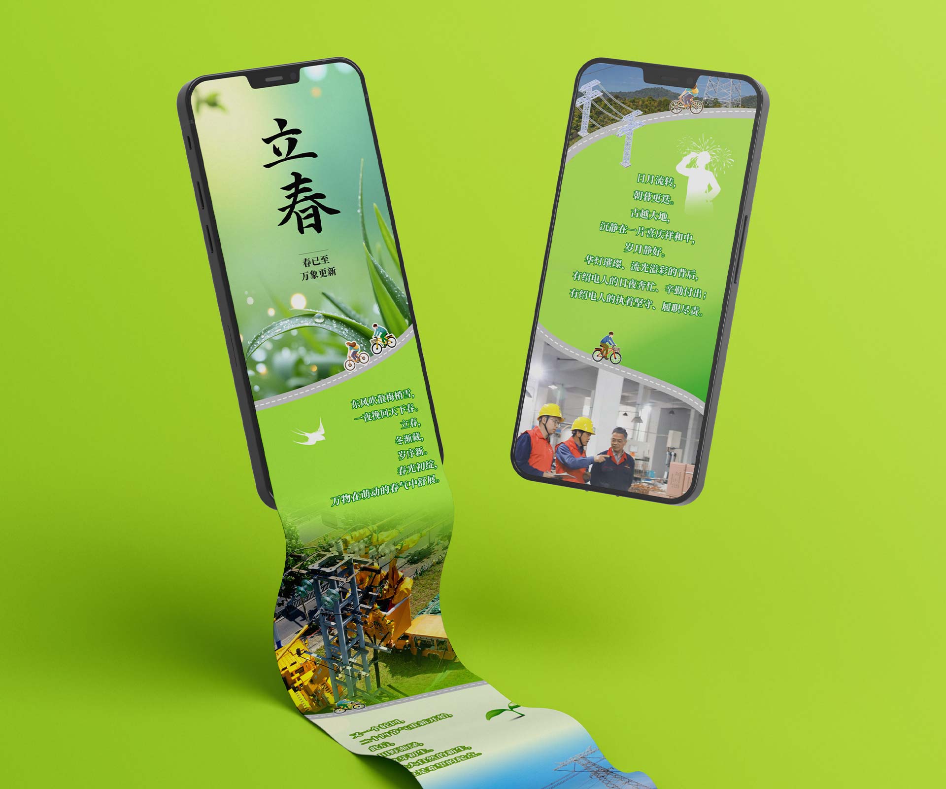 杭州石特廣告策劃有限公司作為一家在品牌全案和設(shè)計(jì)方向深耕多年、頗具影響力的公司,在 2025 年立春之際,接到為國網(wǎng)浙江省電力公司設(shè)計(jì)公眾號長圖的任務(wù)。目的是通過生動且富有創(chuàng)意的長圖設(shè)計(jì),將立春這一傳統(tǒng)節(jié)氣與國網(wǎng)浙江電力的服務(wù)理念、業(yè)務(wù)特色相融合,在公眾號平臺上向廣大用戶傳遞溫暖的節(jié)氣祝福,同時(shí)展示企業(yè)形象與人文關(guān)懷。