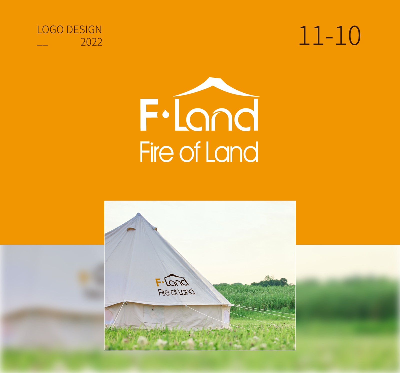 通過“F.Land"與戶外露營帳篷的外形提取設(shè)計(jì),組合。元素中的“l(fā)and"中文意思為“陸地”,帳篷作為戶外露營重要的工具,在英文“l(fā)and"上方加入帳篷元素,兩者巧妙結(jié)合,體現(xiàn)出了戶外露營者在陸地上搭建帳篷的這一特點(diǎn),突出品牌的定位一戶外露營。