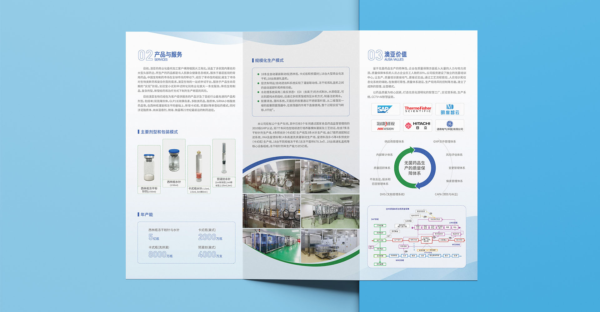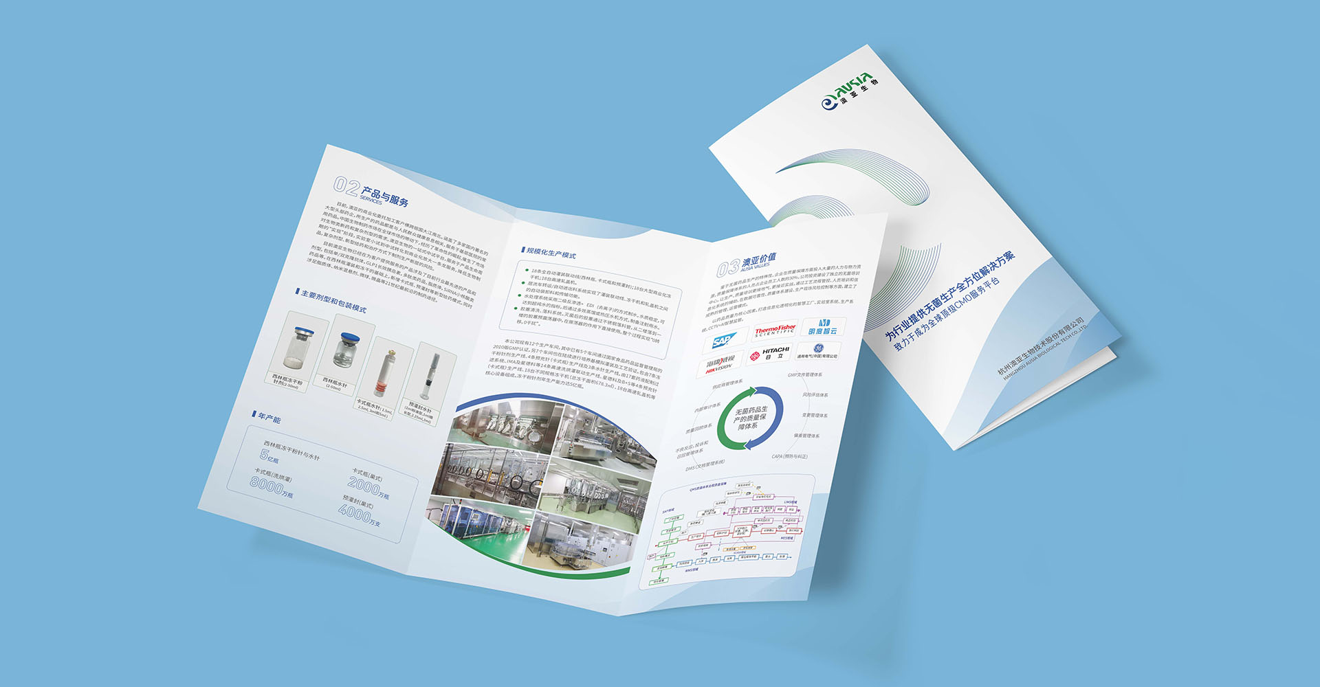 在澳亞生物科技的宣傳折頁(yè)設(shè)計(jì)中,我們以企業(yè)標(biāo)志為核心,進(jìn)行了富有創(chuàng)意的藝術(shù)化演變。這一設(shè)計(jì)旨在形成簡(jiǎn)潔、大氣的圖形,具有強(qiáng)烈的視覺(jué)沖擊力。公司基本情況、產(chǎn)品與服務(wù)、優(yōu)勢(shì)實(shí)力進(jìn)行詳細(xì)展示,內(nèi)容豐富可讀性強(qiáng),與“無(wú)菌生產(chǎn)的全方位解決方案提供者”定位語(yǔ)契合。選擇了藍(lán)色為主調(diào),有助于傳遞專業(yè)、科技、穩(wěn)重的品牌形象,還能夠給人帶來(lái)信任和安全感。通過(guò)文字的排版和圖形的搭配,整個(gè)折頁(yè)設(shè)計(jì)簡(jiǎn)潔而不失層次感,內(nèi)容豐富且可讀性強(qiáng),符合澳亞生物科技的品牌定位和傳播需求。