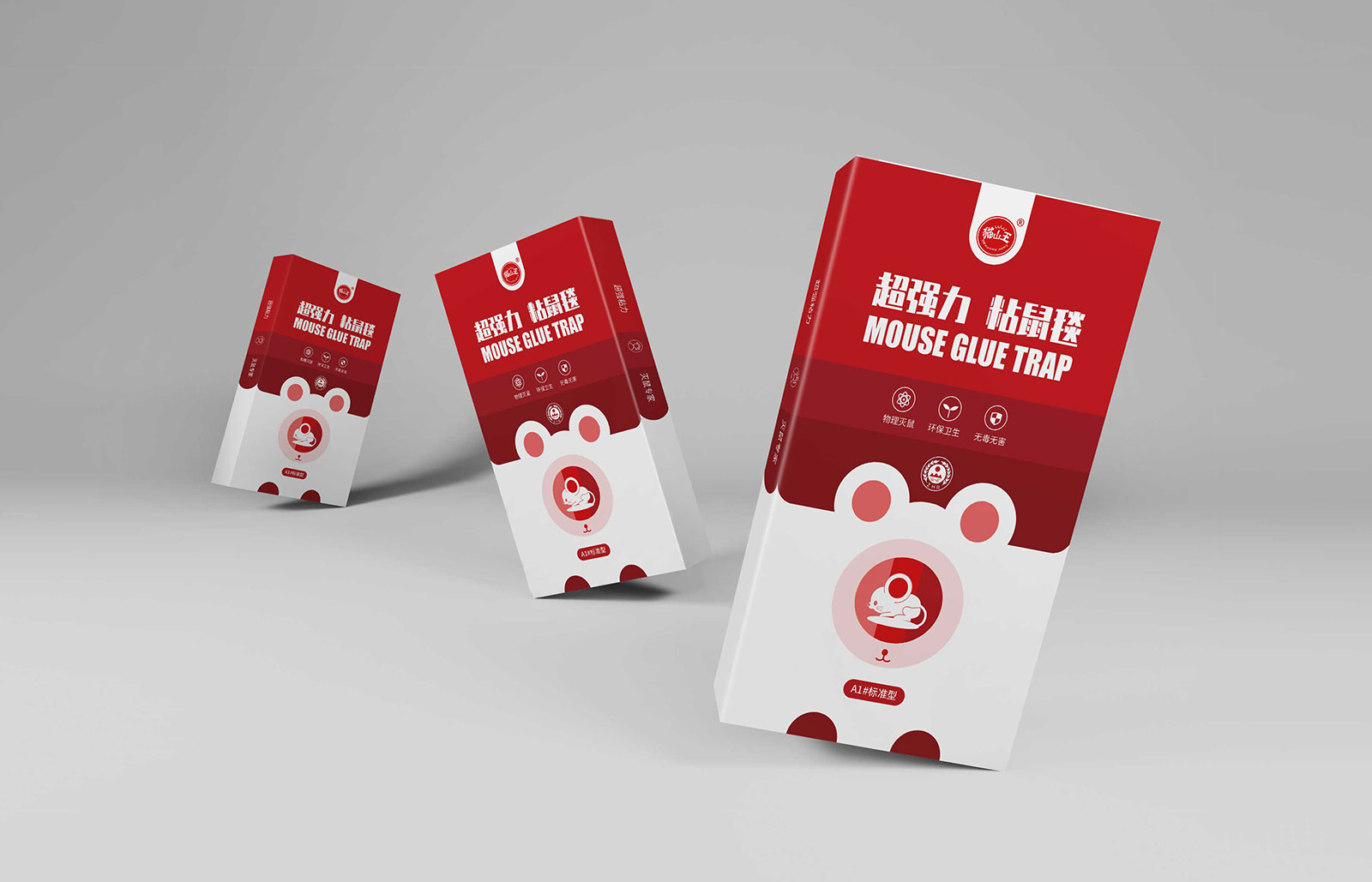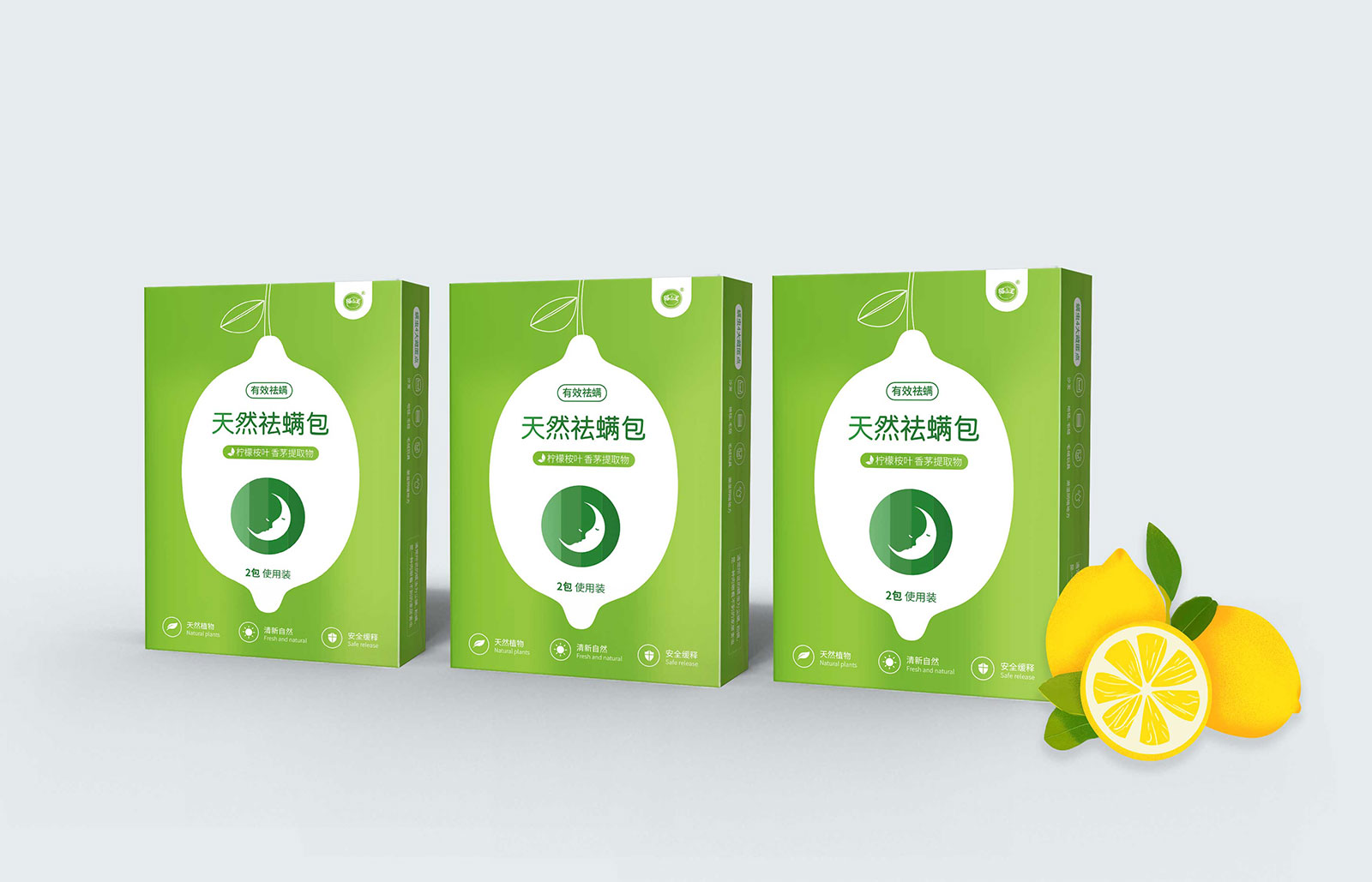 其一天然祛螨包主打天然植物、清新自然、安全緩釋的產(chǎn)品特點,其中天然植物中主要含有檸檬桉葉與香茅提取物,所以采用代表天然的綠色作為主色調,檸檬作為主要的設計元素呈現(xiàn)在包裝上,由于祛螨包的使用直接與人類睡眠相關,所以加入了月亮作為輔助元素,從包裝上就體現(xiàn)其產(chǎn)品成分、功能、特點。其二超強力粘鼠板主打物理滅鼠、環(huán)保衛(wèi)生、無毒無害,采用簡約的包裝特征,抓住“超強力”這個購買理由,用紅色形象表達,結合老鼠的外在形象特征進行設計。通過包裝升級統(tǒng)一形象后,深化了貓山王在用戶心中的外在形象,品類包裝問題得以解決。