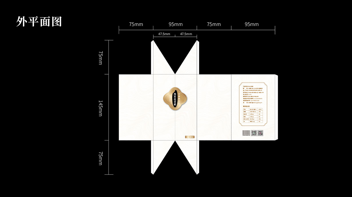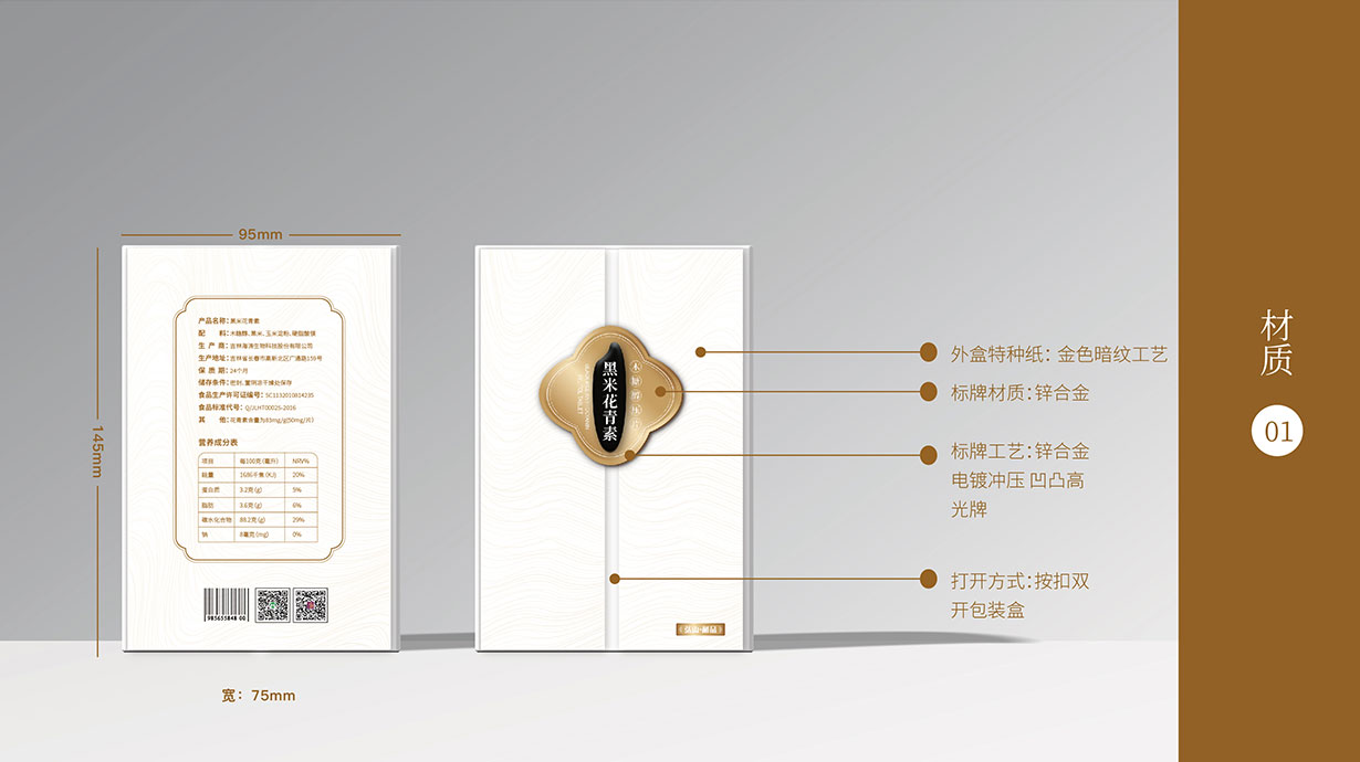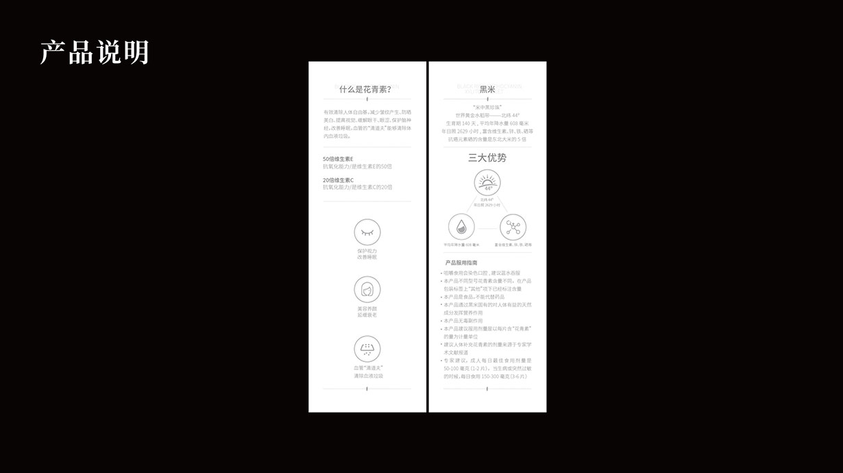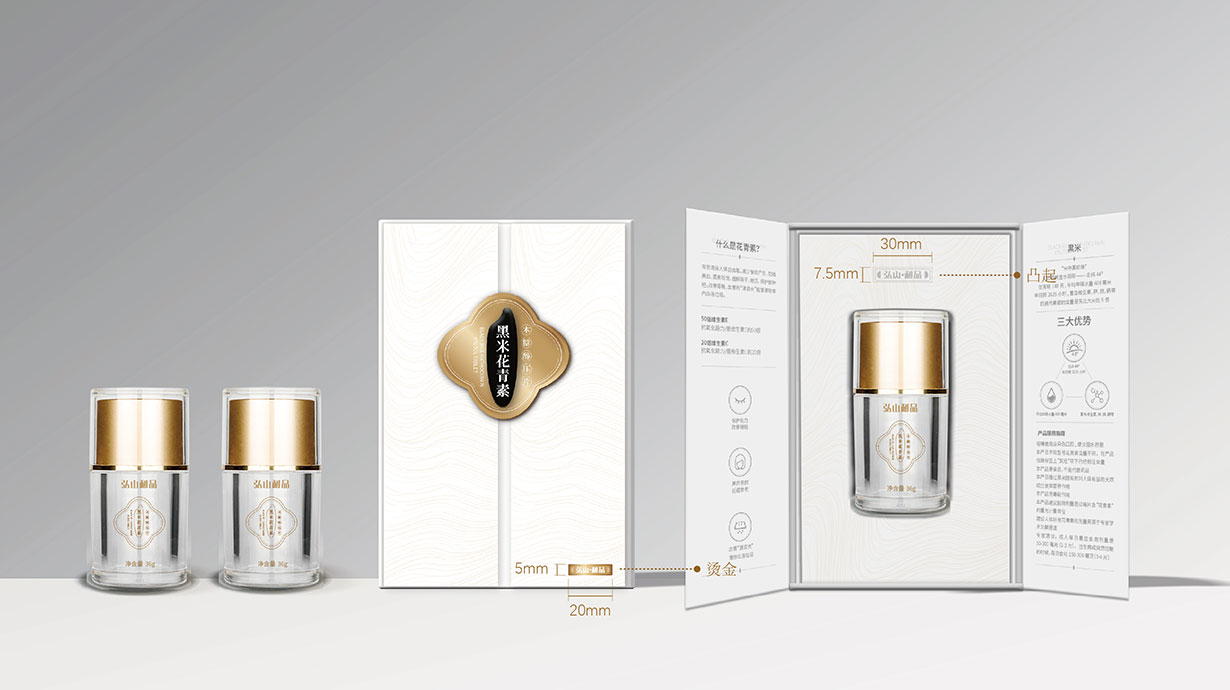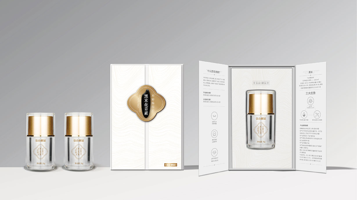 針對這一目標問題,石特從黑米花青素本身代表的含義出發,在包裝上著重體現其特色,為其梳理了內盒外盒的包裝設計,提升了其品牌形象。