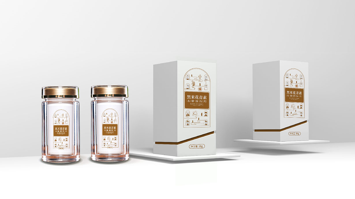 花青素,自然界一類廣泛存在于植物中的水溶性天然色素,也是植物花瓣中的主要呈色物質,水果、蔬菜、花卉等五彩繽紛的顏色大部分與之有關,它廣泛存在于黑米、藍莓、越橘、紫甘藍等植物中,是一種具有一定營養和藥理作用的純天然食用色素,可以抵抗因人體自由基引起的多種相關疾病。原黑米花青素的包裝沒有過多的創意,瓶身形狀沒有特色,只有一個單一的LOGO,不利于品牌傳播。