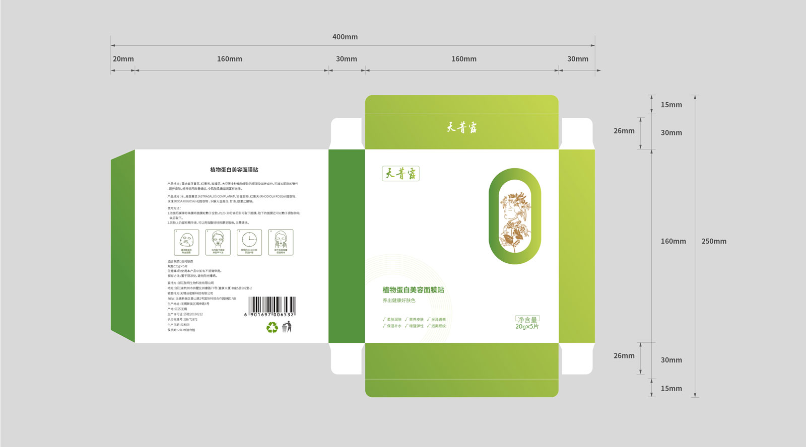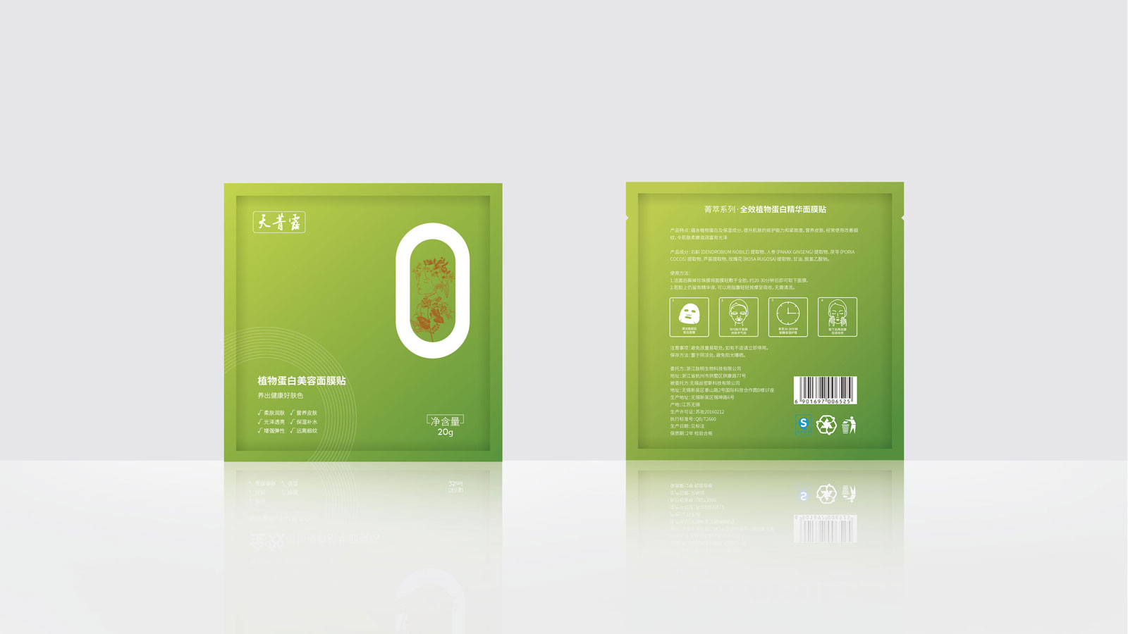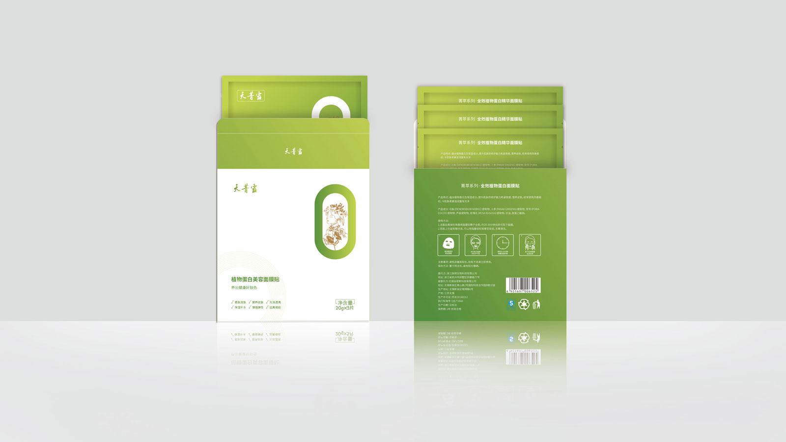包裝創意闡述:整體畫面簡潔而不簡單,配色上用了牛油果綠,傳達健康、綠色、純天然的理念。配上廣告語“植物蛋白,不只是美白”兩者結合既突出了產品本身植物提取、零添加劑的特點,又闡明了產品全效護膚的功能。