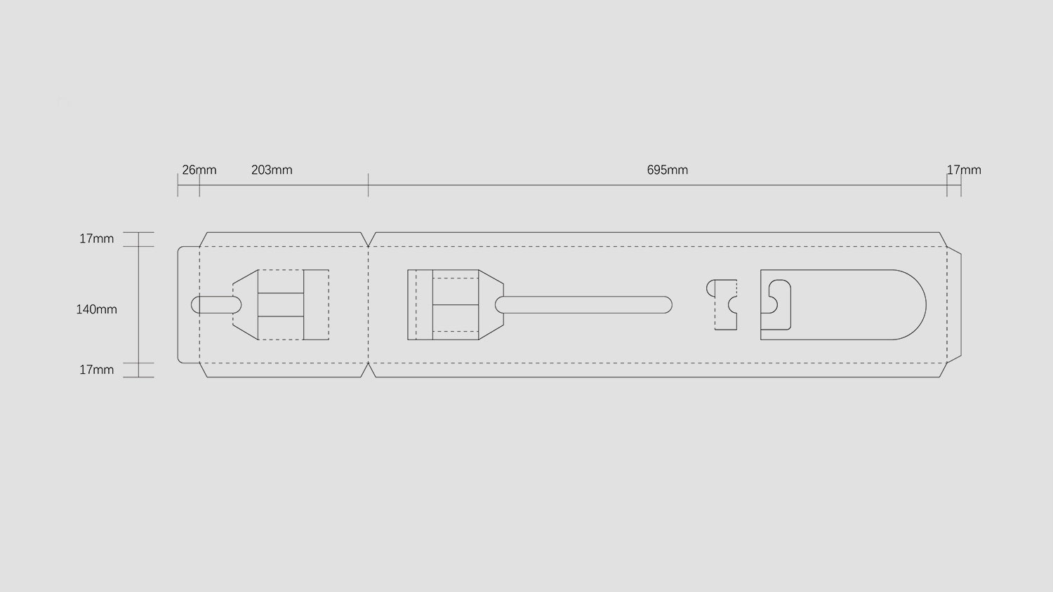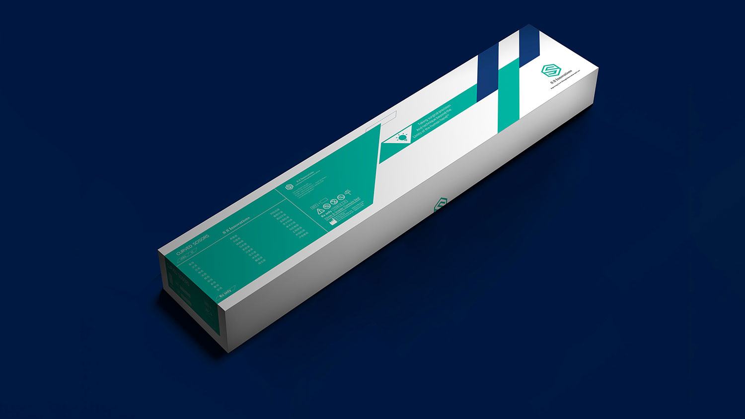 石特根據其品牌的產品特點及品牌理念,為其進行機器人醫療機械包裝設計。整體以品牌主色調藍綠色為主,白色做基調,利用品牌LOGO“S”的直角形狀與六邊形相結合,描繪輪廓,可形成大面積的淺色底紋,加強品牌視覺效果,體現技術嚴謹且有序;六邊形組成間的三角形看似平平無奇,眾所周知三角形是最穩固的形狀,體現制造技術安全穩定,整體簡約而不簡單。