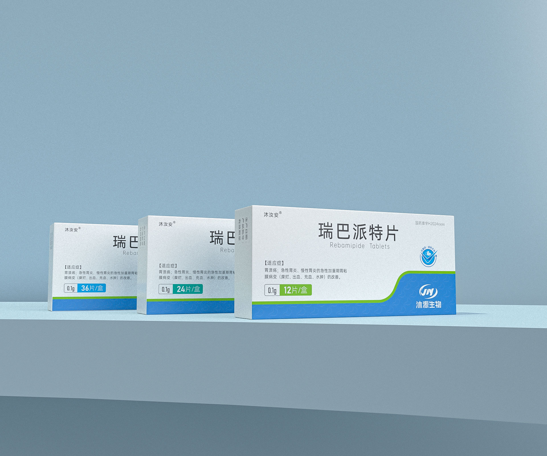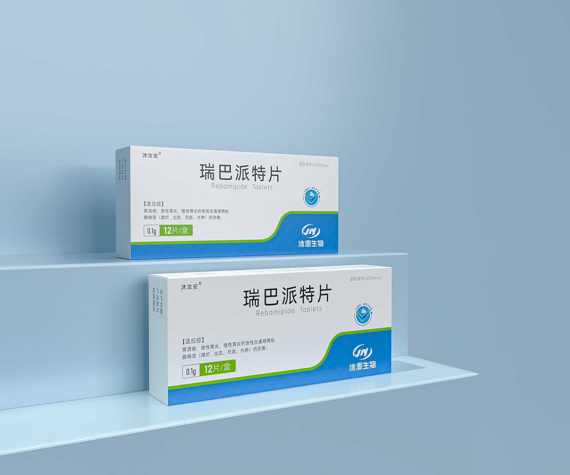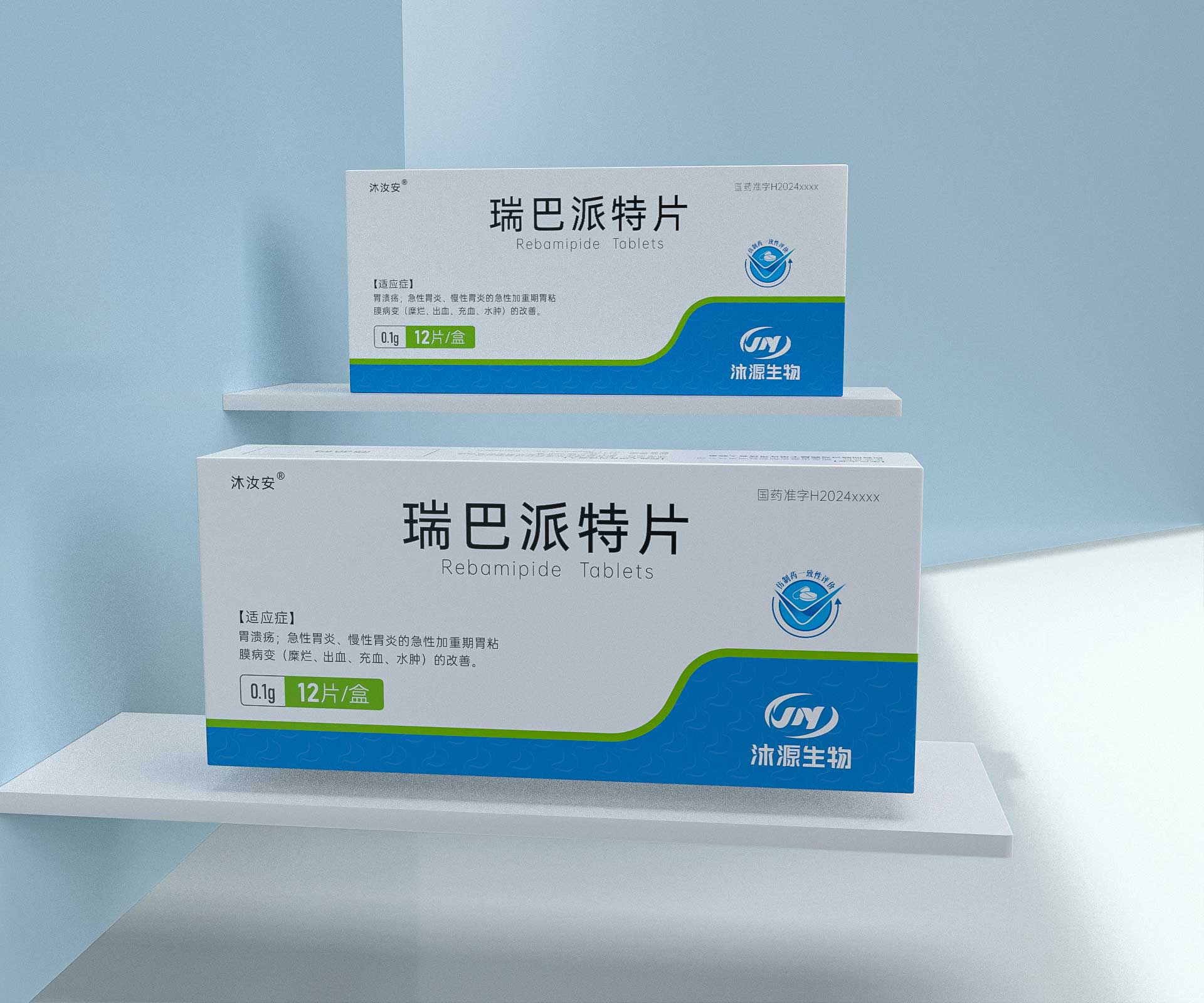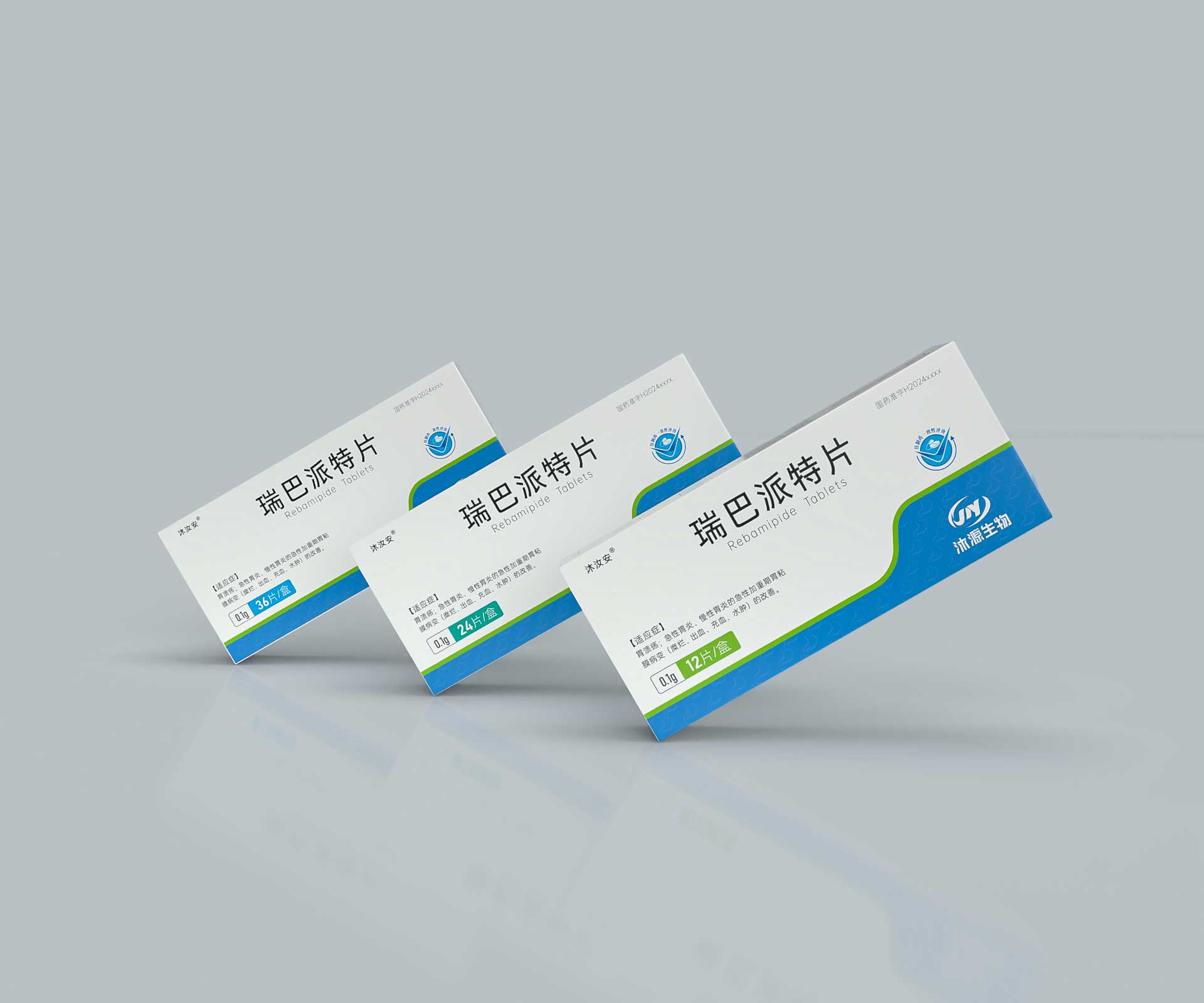 服務項目:瑞巴派特片藥品外包裝盒設計,外箱設計,說明書設計