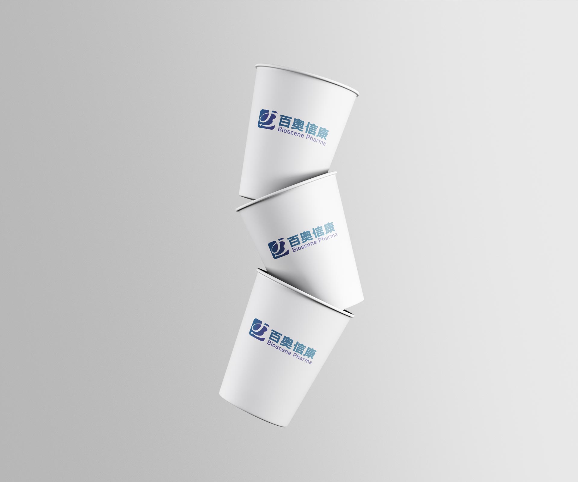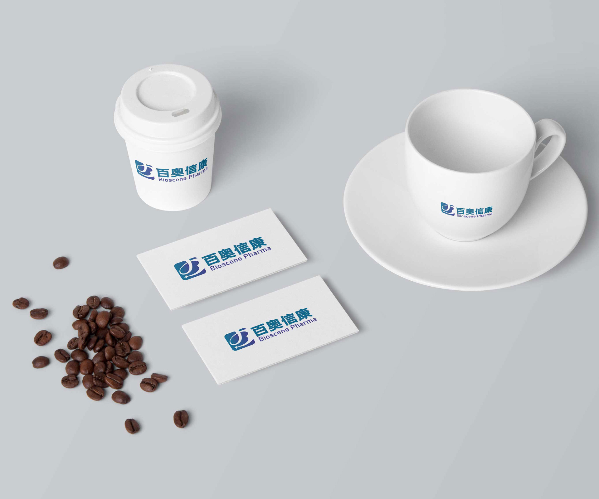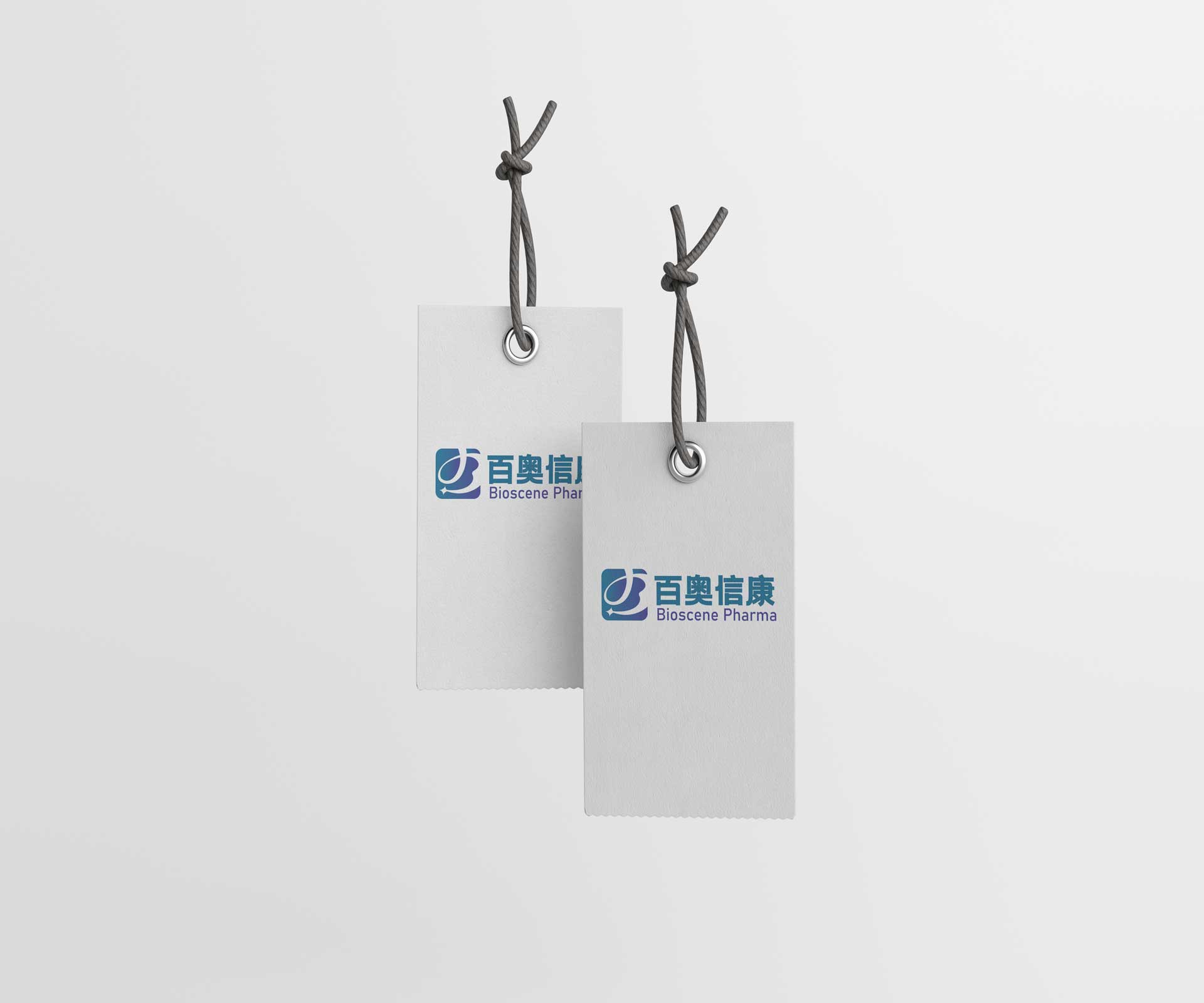 中英文品牌名稱“百奧信康”與“Bioscene Pharma”以專業(yè)字體搭配,清晰易讀,強化品牌識別。