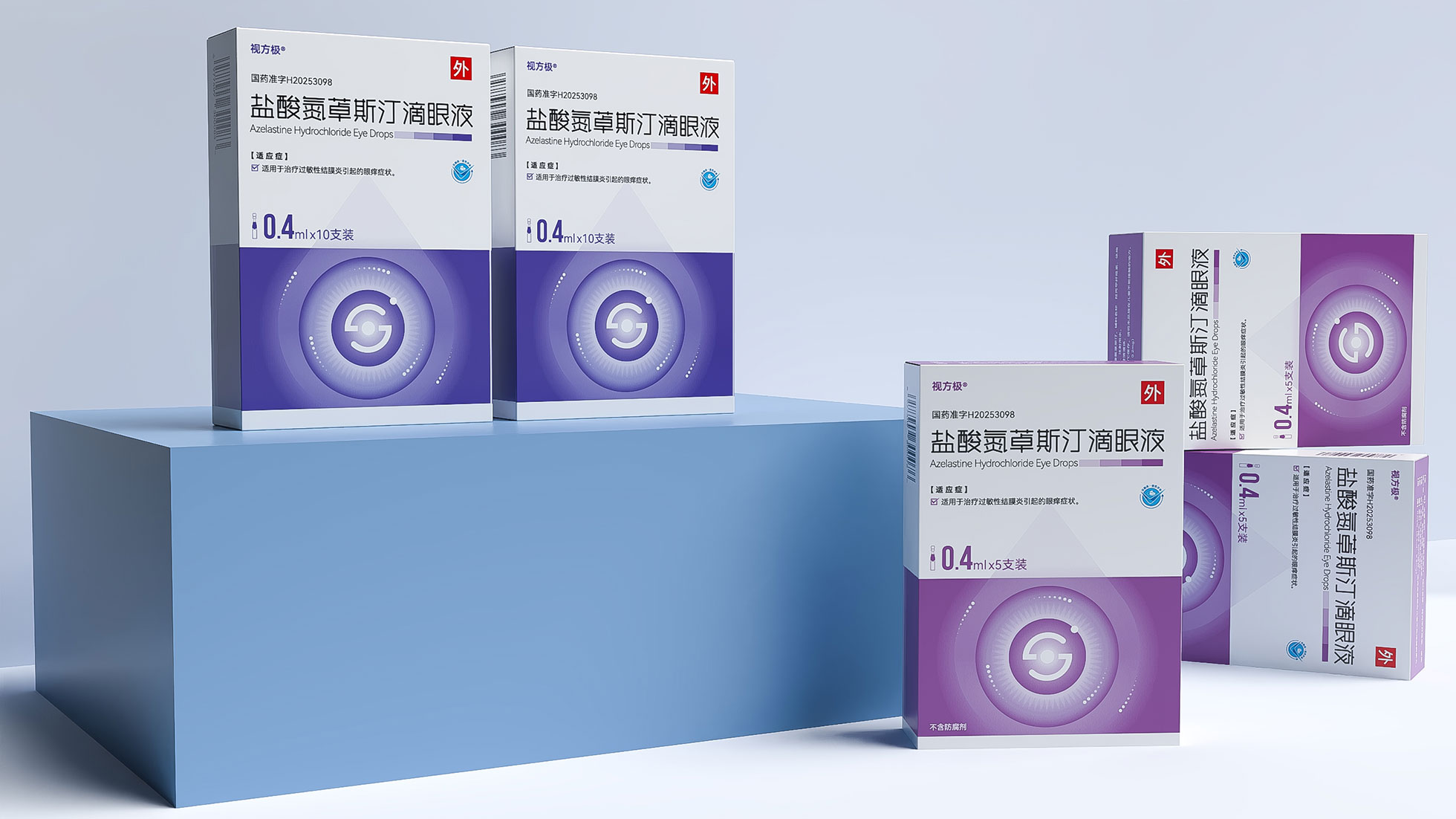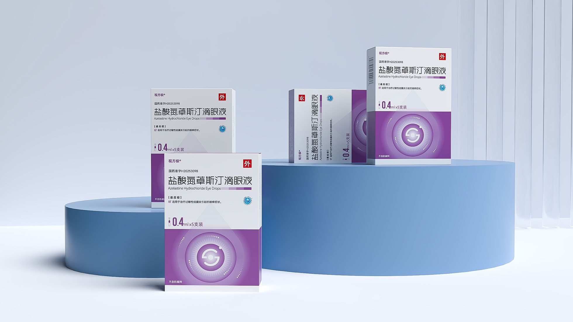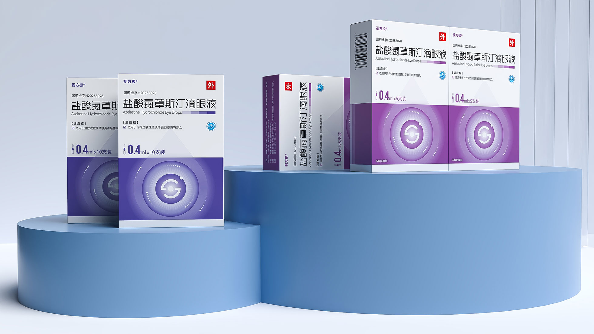 本項(xiàng)目是石特大健康為浙江視方極醫(yī)藥科技有限公司的核心產(chǎn)品——鹽酸氮?斯汀滴眼液,所提供的從終端包裝到專(zhuān)業(yè)DA(Detail Aid) 的一站式整合設(shè)計(jì)服務(wù)。該產(chǎn)品用于治療過(guò)敏性結(jié)膜炎,其市場(chǎng)成功既依賴于在藥店貨架上對(duì)消費(fèi)者的直接吸引力,也離不開(kāi)面向眼科醫(yī)生的專(zhuān)業(yè)學(xué)術(shù)推廣。我們的挑戰(zhàn)在于,如何構(gòu)建一個(gè)統(tǒng)一的品牌視覺(jué)體系,使其在包裝上能清晰傳遞產(chǎn)品功效、激發(fā)購(gòu)買(mǎi)欲望,同時(shí)在DA上能專(zhuān)業(yè)地呈現(xiàn)藥物機(jī)理和臨床優(yōu)勢(shì),成為醫(yī)生可信賴的處方依據(jù),最終實(shí)現(xiàn)“藥店動(dòng)銷(xiāo)”與“臨床推廣”的雙輪驅(qū)動(dòng)。