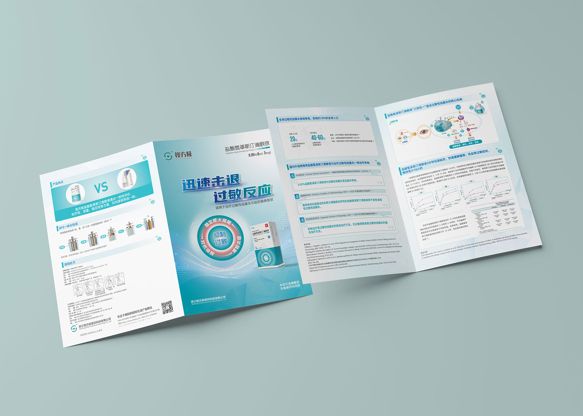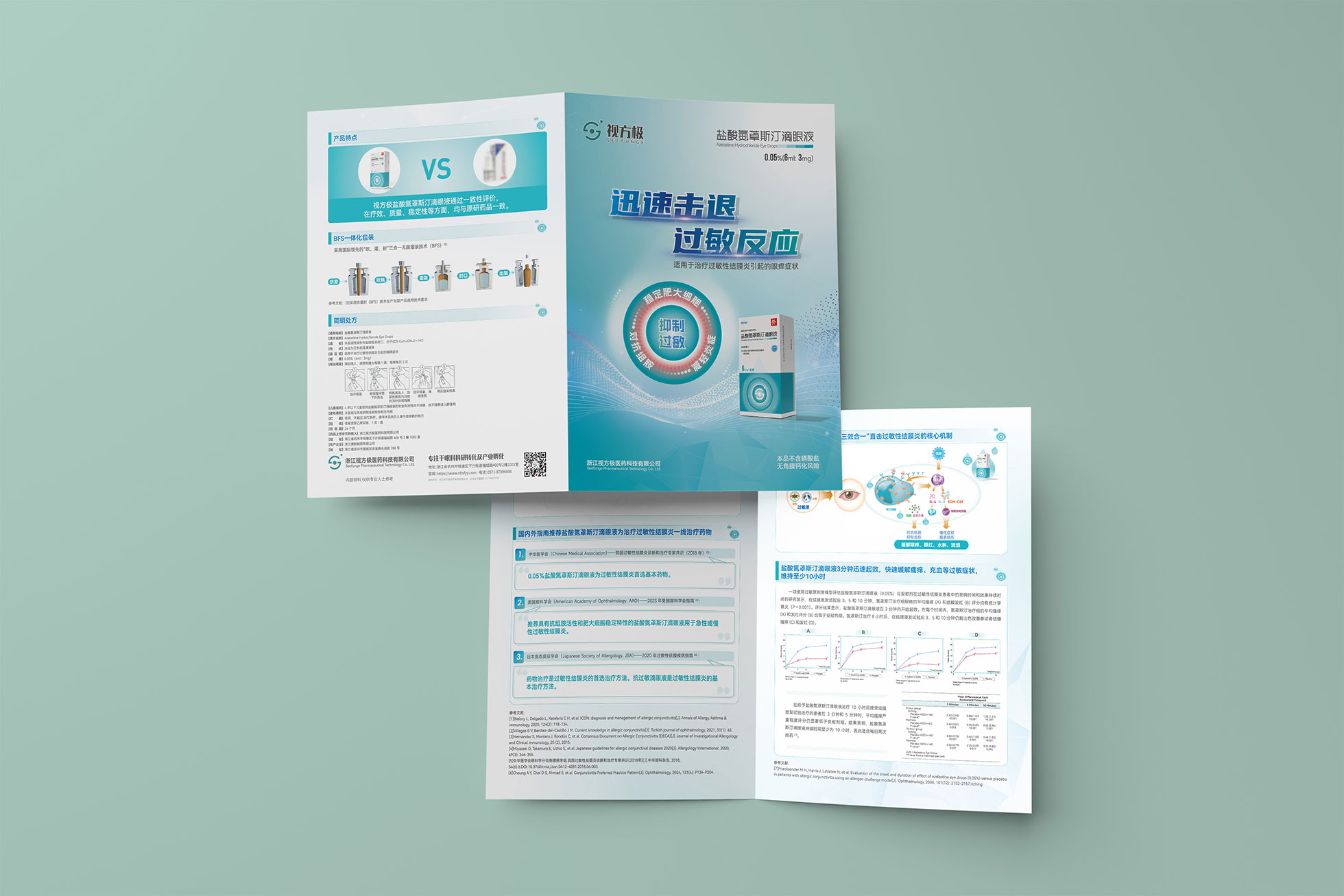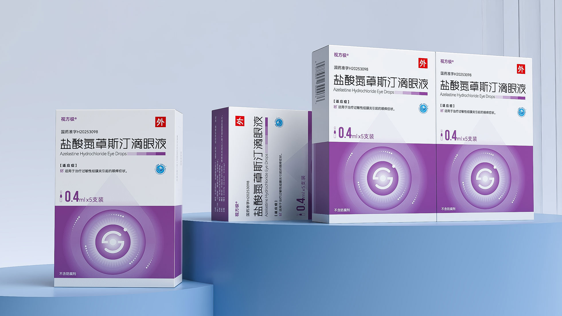 本項(xiàng)目是石特大健康為浙江視方極醫(yī)藥科技有限公司的核心產(chǎn)品——鹽酸氮?斯汀滴眼液,所提供的從終端包裝到專(zhuān)業(yè)DA(Detail Aid) 的一站式整合設(shè)計(jì)服務(wù)。該產(chǎn)品用于治療過(guò)敏性結(jié)膜炎,其市場(chǎng)成功既依賴于在藥店貨架上對(duì)消費(fèi)者的直接吸引力,也離不開(kāi)面向眼科醫(yī)生的專(zhuān)業(yè)學(xué)術(shù)推廣。我們的挑戰(zhàn)在于,如何構(gòu)建一個(gè)統(tǒng)一的品牌視覺(jué)體系,使其在包裝上能清晰傳遞產(chǎn)品功效、激發(fā)購(gòu)買(mǎi)欲望,同時(shí)在DA上能專(zhuān)業(yè)地呈現(xiàn)藥物機(jī)理和臨床優(yōu)勢(shì),成為醫(yī)生可信賴的處方依據(jù),最終實(shí)現(xiàn)“藥店動(dòng)銷(xiāo)”與“臨床推廣”的雙輪驅(qū)動(dòng)。
